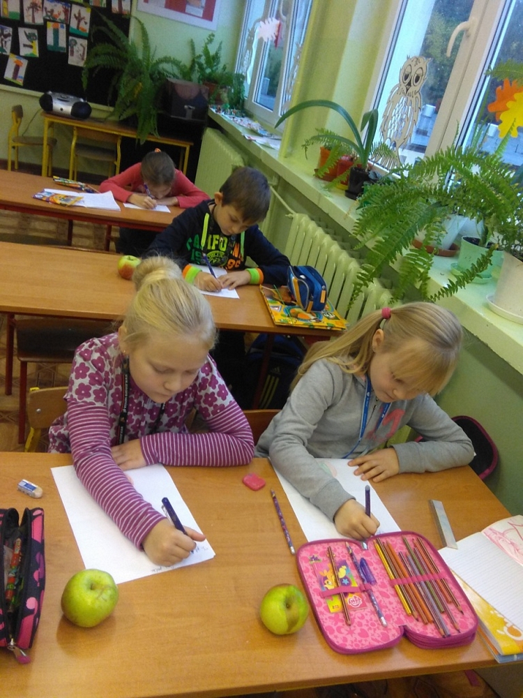 „Owoce w szkole”, zachęcającego uczniów do propagowania zdrowego i aktywnego stylu życia. Na zajęciach plastycznych dzieci przygotowały piękne wydzieranki, których tematem były oczywiście jabłka.