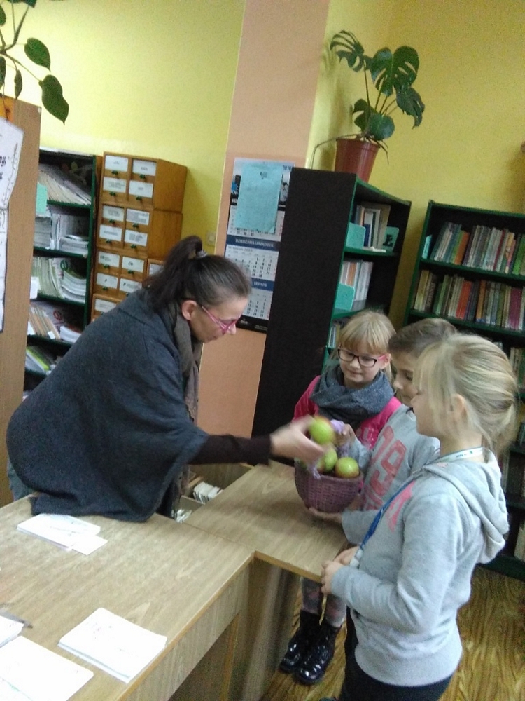 Dodatkowo obdarowały smacznymi jabłkami nauczycieli i pracowników szkoły, a także pracowników Miejsko-Gminnego Ośrodka Kultury w Wyrzysku i Komisariatu Policji. Odwiedziły również sklep spożywczy.