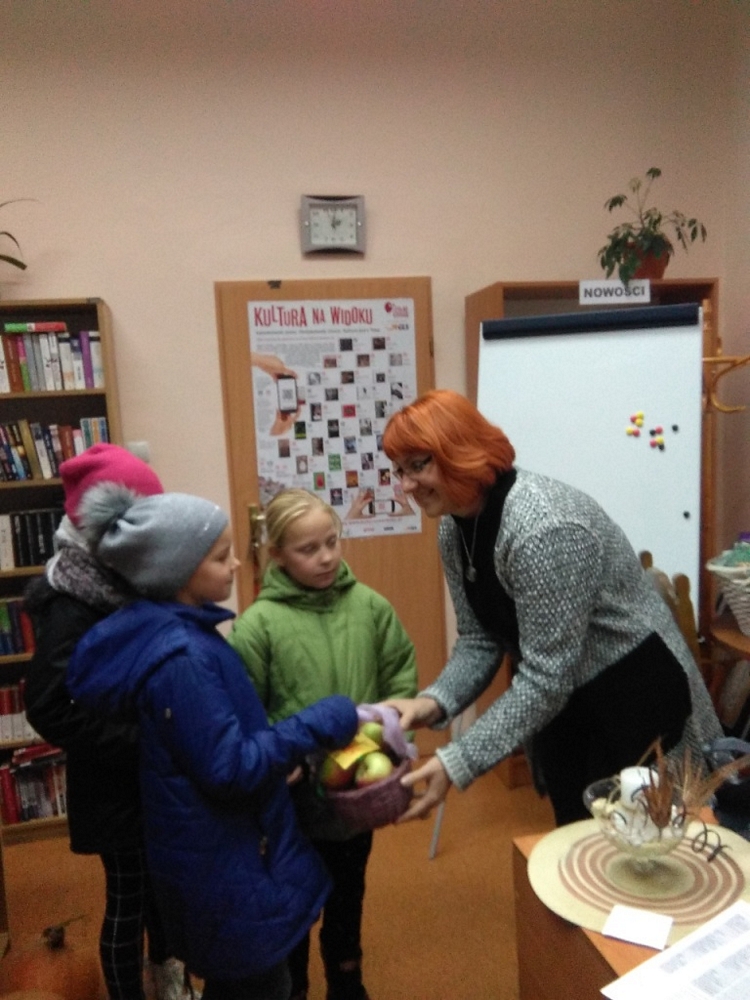 Dzień ten był okazją do skosztowania jabłkowych pyszności m.in. świeżego soku jabłkowego i pachnących jabłuszek. Na lekcję została zaproszona pani dyrektor Danuta Buryta –Arndt, która przedstawiła dzieciom zalety spożywania owoców ·w szkole i zdrowego śniadania. Nadmieniła także, iż szkoła jest objęta programem
