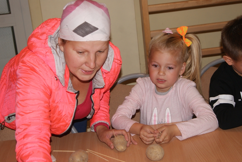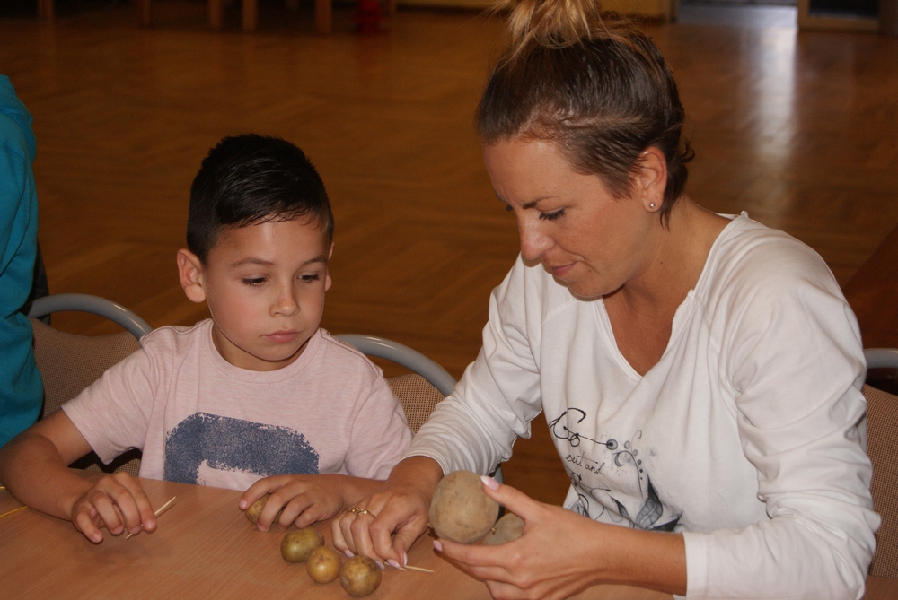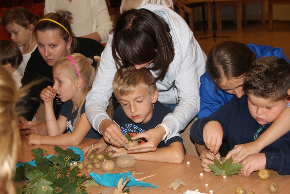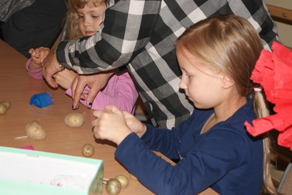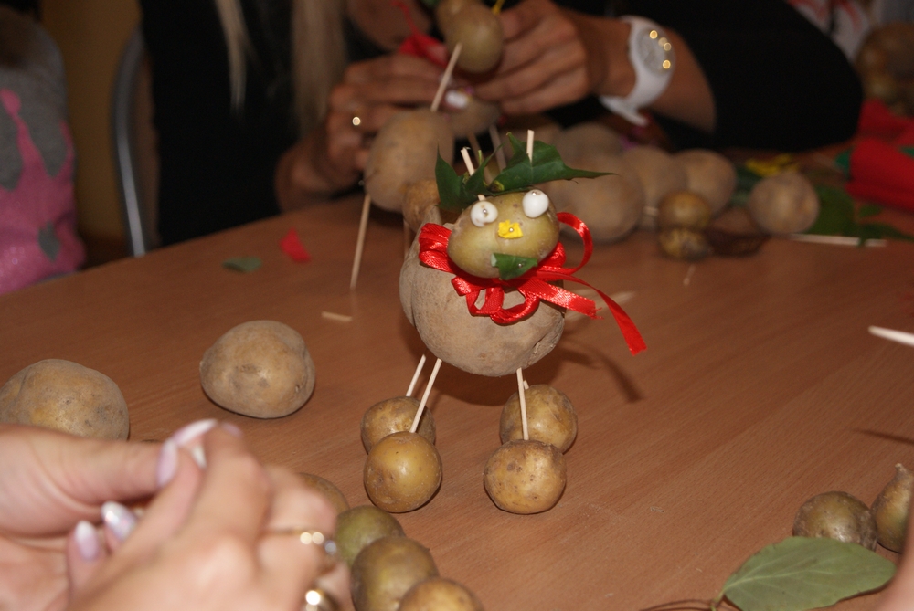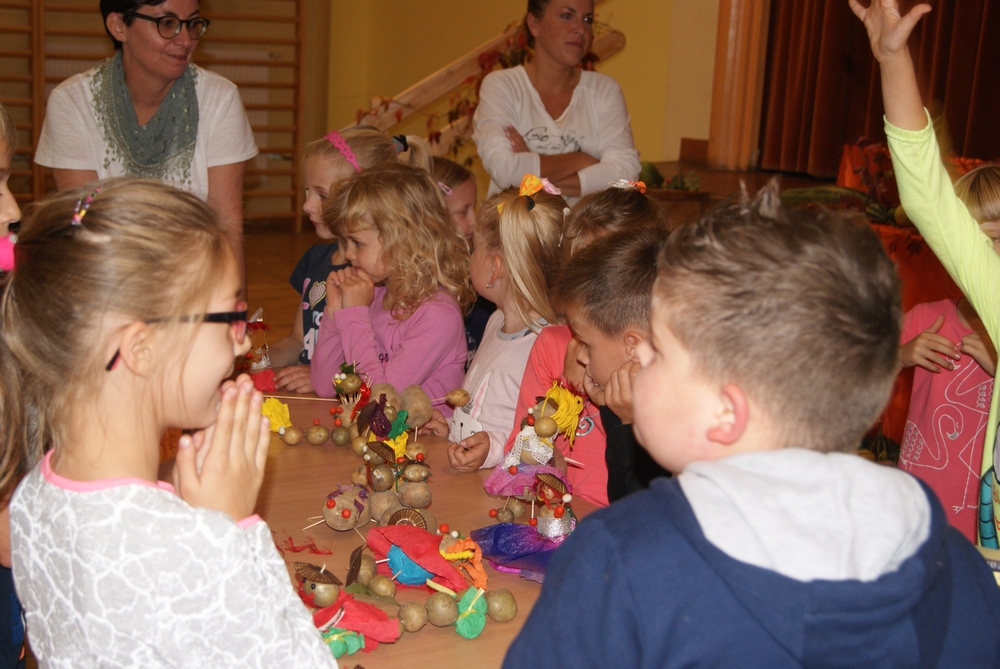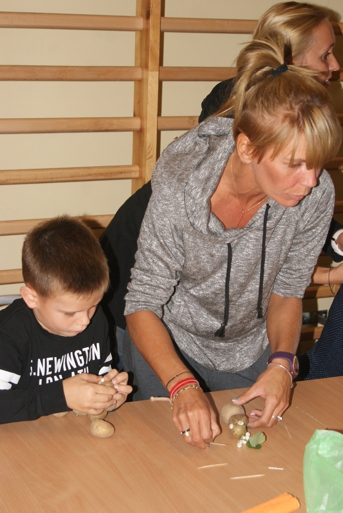 Na początku dzieci brały udział w konkursach sportowych: odbyło się ,,Rzucanie ziemniaków do kosza”, następnie odbyły się zawody ,,Przenoszenia ziemniaka na łyżce”. Wszyscy głośno kibicowali uczestnikom. Ostatnią konkurencją było stworzenie z przygotowanych wcześniej materiałów ,,Ziemniaka-Cudaka”, w tym konkursie uczestniczyły dzieci wraz z rodzicami. Wszyscy zostali nagrodzeni, cała klasa otrzymała dwie książki do czytania, zeszyt i ołówek oraz dyplom dla całej klasy. Rodzice za pomoc dzieciom w tworzeniu ,,Ziemniaka-Cudaka” otrzymali dyplom.