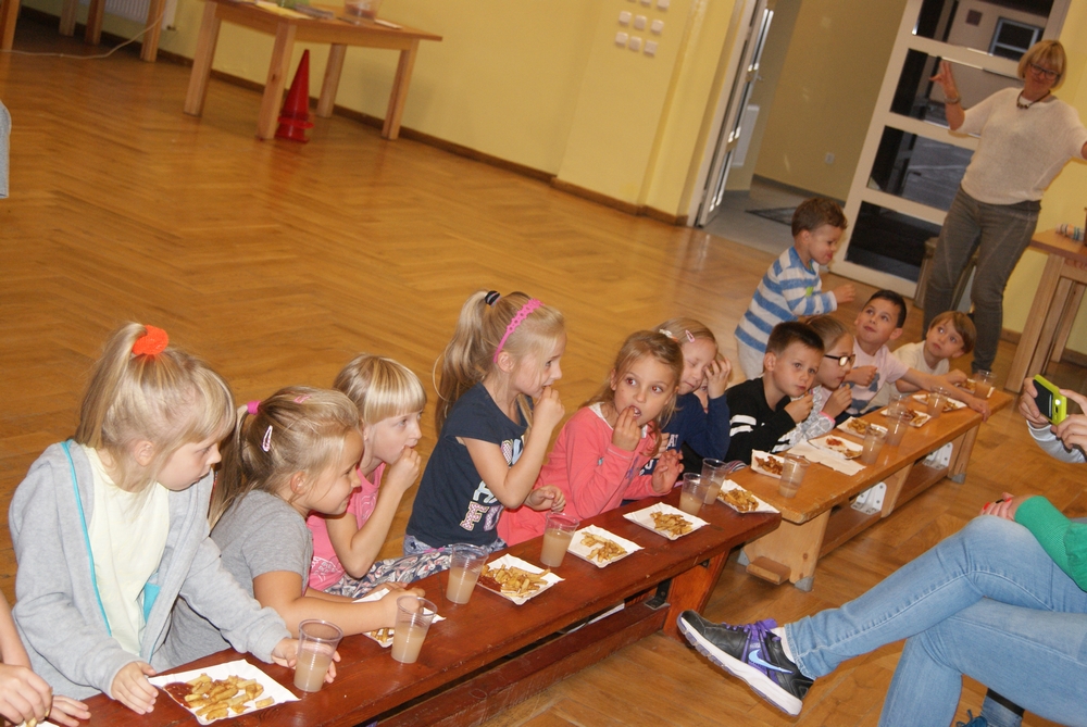 Atrakcją tego dnia był oczywiście pieczony ziemniak. Dzieci otrzymały również smakołyki, zdrowe jabłka i sok . Podczas tego popołudniowego spotkania uczniowie wraz z rodzicami i nauczycielami bawili się tańcząc do muzyki.