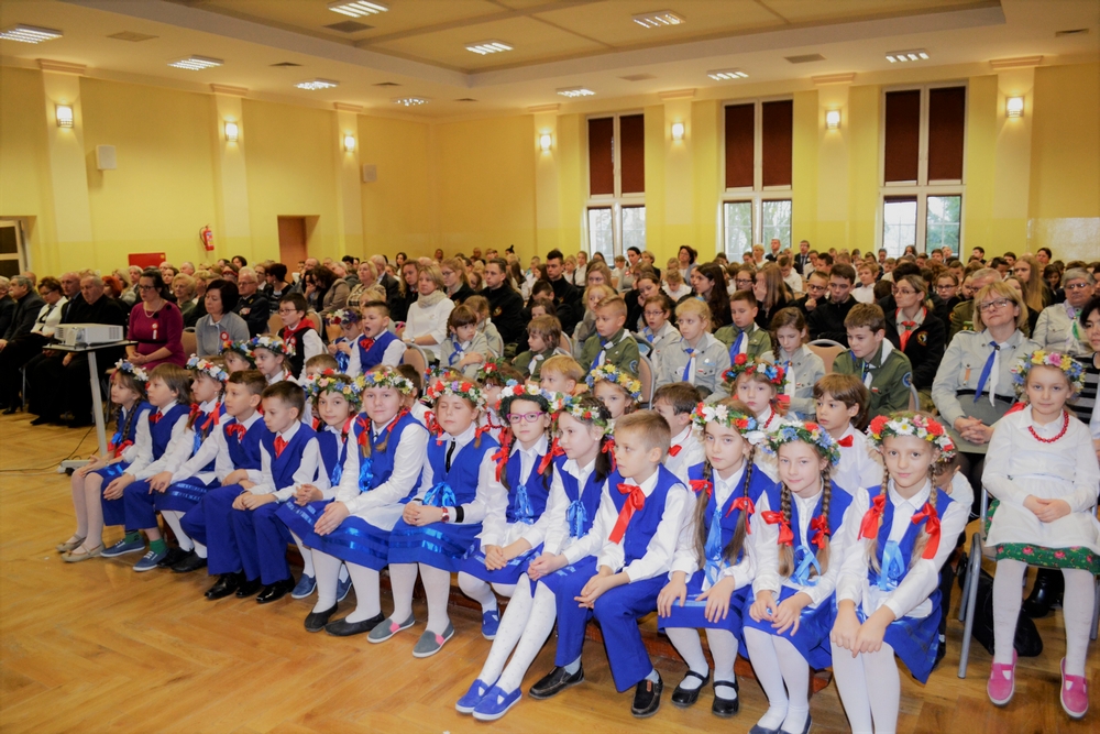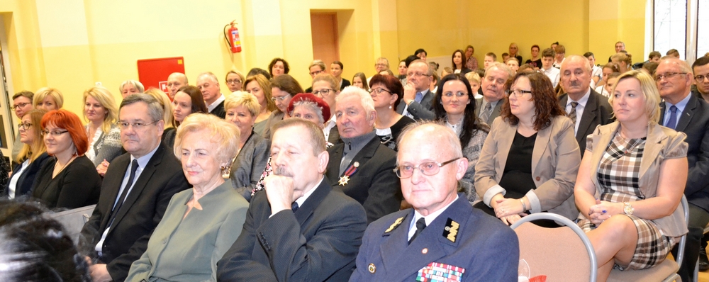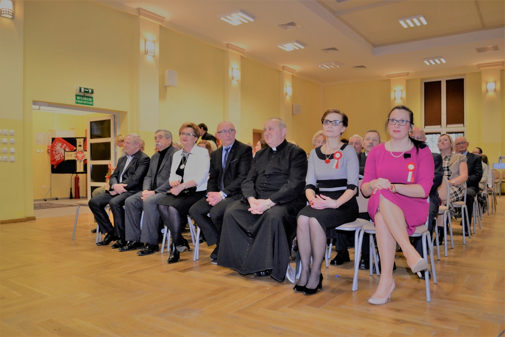 Zgromadzonych w sali widowiskowej przywitała pani dyrektor Danuta Buryta- Arndt. Do grona osób, które uświetniły naszą uroczystość należą: ks. Janusz Drożkowski, Bogusława Jagodzińska- Burmistrz Wyrzyska, Piotr Radwański- wiceprzewodniczący Rady Miasta, Zbigniew Piotrowski, Stefan Wełniak- radni Rady Miasta,Grzegorz Rzymski- Komendant Hufca ZHP im. Stanisława Staszica w Pile i Bożena Wojciechowska- Zastępca Komendanta Hufca ZHP oraz Maria Nowacka- Prezes Koła Towarzystwa Pamięci Powstania Wielkopolskiego w Mroczy i córka powstańca 1918/1919. Zaproszenie przyjęli również: Barbara Piorunowska- Prezes Towarzystwa Przyjaciół Wyrzyska, Edmund Pijanowski- Prezes Klubu Sportowego „Łobzonka”, Wojciech Kicman- historyk, regionalista, Roman Chwaliszewski- historyk, regionalista, muzealnik, konserwator zabytków, mjr rezerwy Jarosław Odrobiński , wieloletni prezes Koła TPPW w Mroczy, Leon Piszczek ze Związku Inwalidów RP. Wśród gości znaleźli się dyrektorzy szkół, przedszkola, placówek oświatowych i związanych z kulturą z naszej gminy, przewodnicząca Rady Rodziców Edyta Lipkowska, a także były dyrektor SP w Wyrzysku Henryk Plica, przedstawiciele Stowarzyszenia „Dorośli- Dzieciom”,  Stanisław Knioła, Marcin Harczuk, Piotr Spirydow, nauczyciele, rodzice.