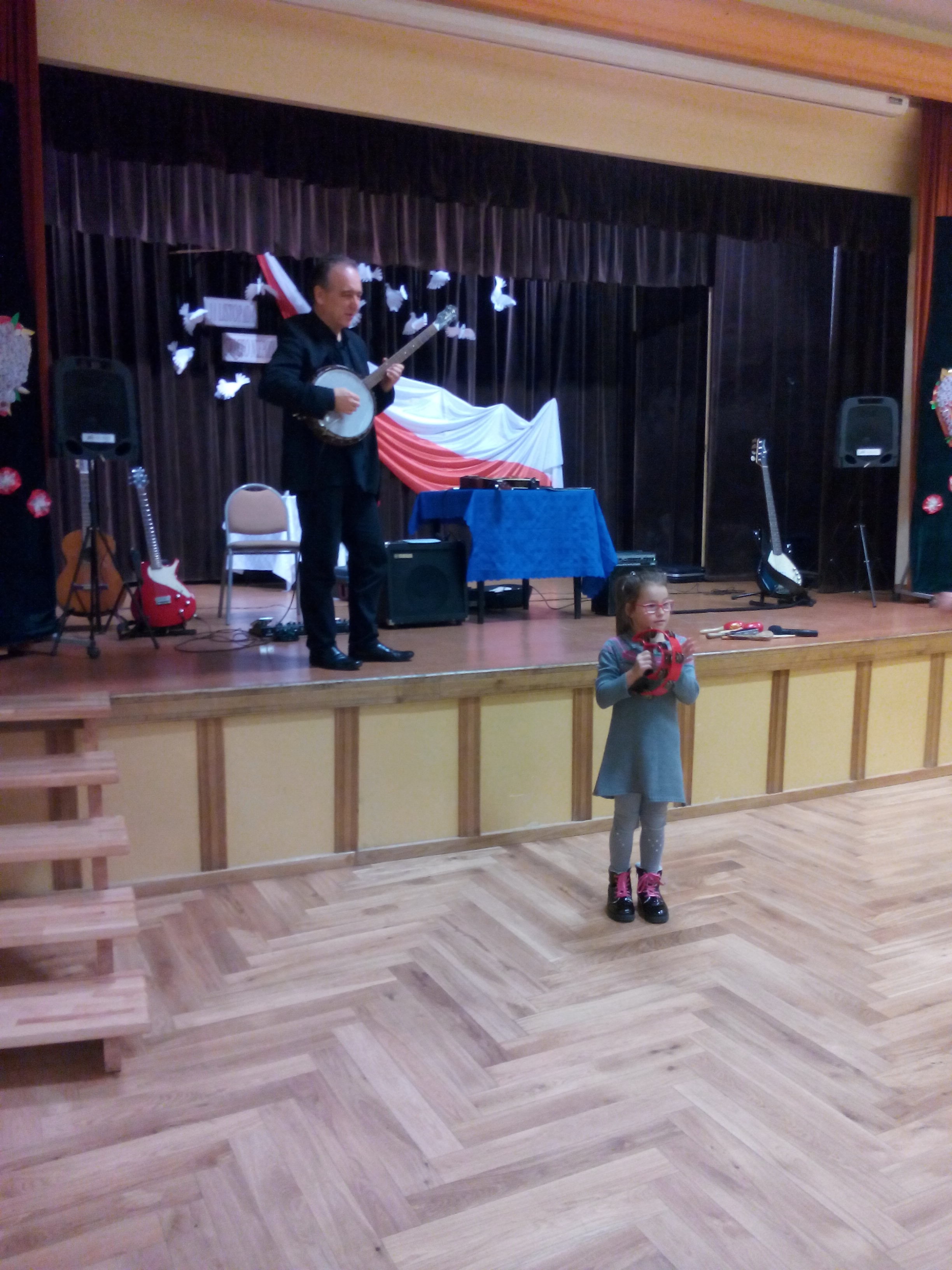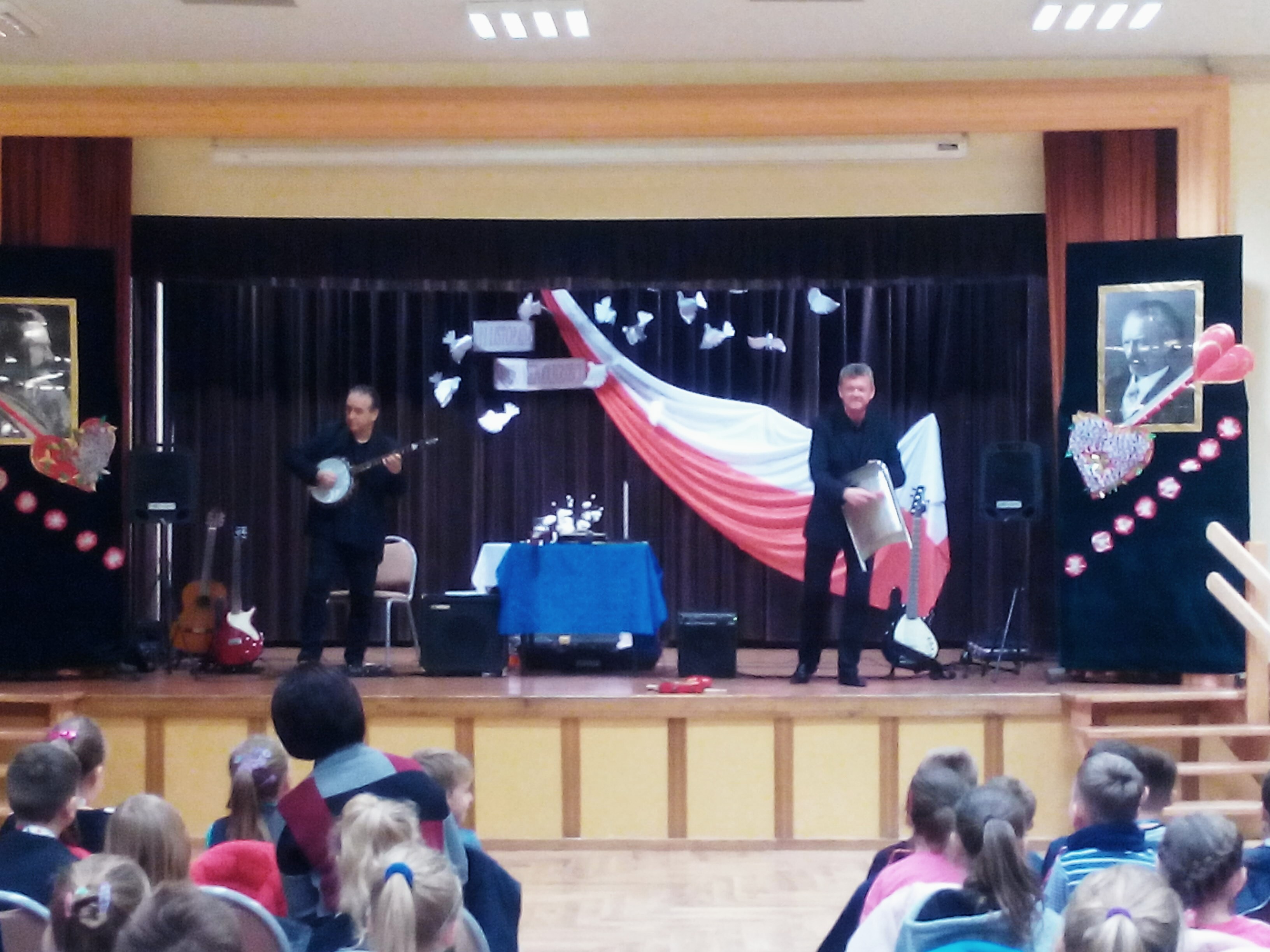 Duo gitarowe tworzą dwaj muzycy: pan Krzysztof Orzechowski – gitara basowa, instrumenty perkusyjne, śpiew i pan Krzysztof Oczkowski – gitara klasyczna, gitara elektryczna, banjo, mandolina. Muzycy oprócz działalności estradowej chętnie oddają się pracy dydaktycznej z dziećmi i młodzieżą. W myśl szczytnego hasła „ Edukacja przez sztukę” artyści bardzo starannie opracowali kilka różnych programów koncertowych adresowanych do uczniów szkół podstawowych i ponadpodstawowych uwzględniając stopień zaawansowania muzycznego, wiek i oczekiwania młodej publiczności. Muzyka proponowana przez zespół dotyka właściwie wszystkich stylów muzycznych – od tzw. muzyki dawnej, przez klasyczną do muzyki rozrywkowej, jazzowej i rockowej. Muzycy przedstawili historię i budowę instrumentów strunowych szarpanych. Uczniowie zobaczyli i usłyszeli gitarę klasyczną, gitarę elektryczną, gitarę basową, mandolinę, banjo i ukulele. Nie obyło się bez nagród, które dzieci otrzymywały za udzielenie poprawnej odpowiedzi. Miały też możliwość zagrania na wybranych instrumentach oraz zadyrygowania orkiestrą.