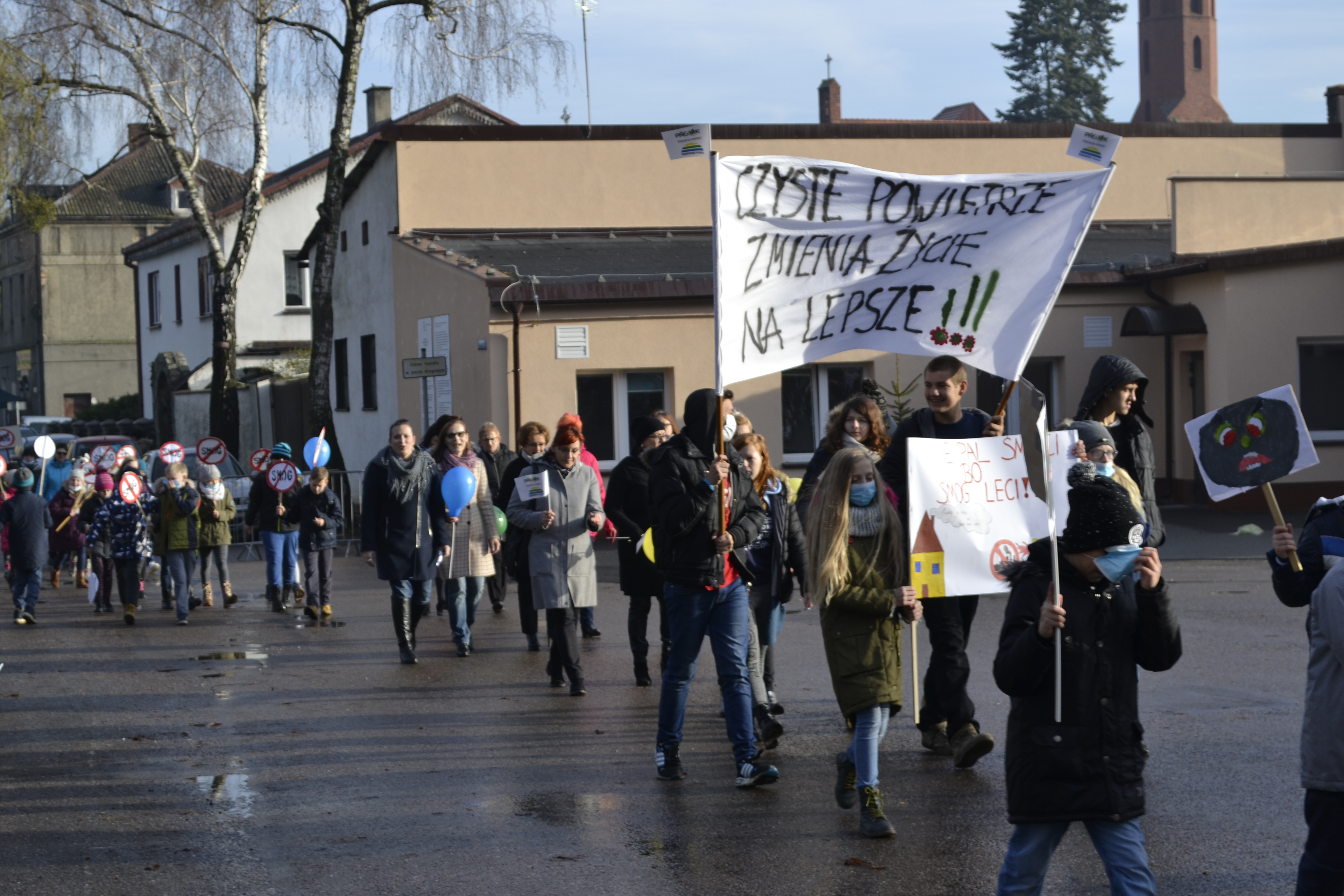 W marszu, obok Szkoły Podstawowej z Wyrzyska, wzięli udział również uczniowie szkół z naszej gminy: z Osieka n/Not., Kosztowa, Falmierowa, Glesna i Rudy. Nie zabrakło także przedszkolaków. Uczestnicy marszu, który rozpoczął się na boisku szkoły podstawowej na ul. Parkowej, a następnie przeszedł przez centrum Wyrzyska, nieśli ze sobą własnoręcznie wykonane transparenty z hasłami potępiającymi palenie śmieci oraz propagującymi walkę ze smogiem. Dzieci i młodzież skandowała też hasła zachęcające do walki z zatruwaniem powietrza spowodowanym przez spalanie w domowych piecach odpadów komunalnych i plastiku. Na czele pochodu maszerowała klasa V b ze Szkoły Podstawowej im. Powstańców Wielkopolskich w Wyrzysku, należąca do „Drużyny Zielonych”, którą swoim patronatem objął PRGOK. Powiewały chorągiewki i kolorowe baloniki, rozlegały się dźwięki gwizdków. Przechodnie i mieszkańcy Wyrzyska otrzymywali od uczniów ulotki, specjalnie przygotowane przez nich na tę akcję. Uczestnicy marszu w proteście przeciwko smogowi mieli założone maseczki. Klasa patronacka V b przygotowała prelekcję na antysmogową i zaśpiewała piosenkę „Drużyny Zielonych”, kiedy wszyscy uczestnicy marszu zebrali się na targowisku miejskim.