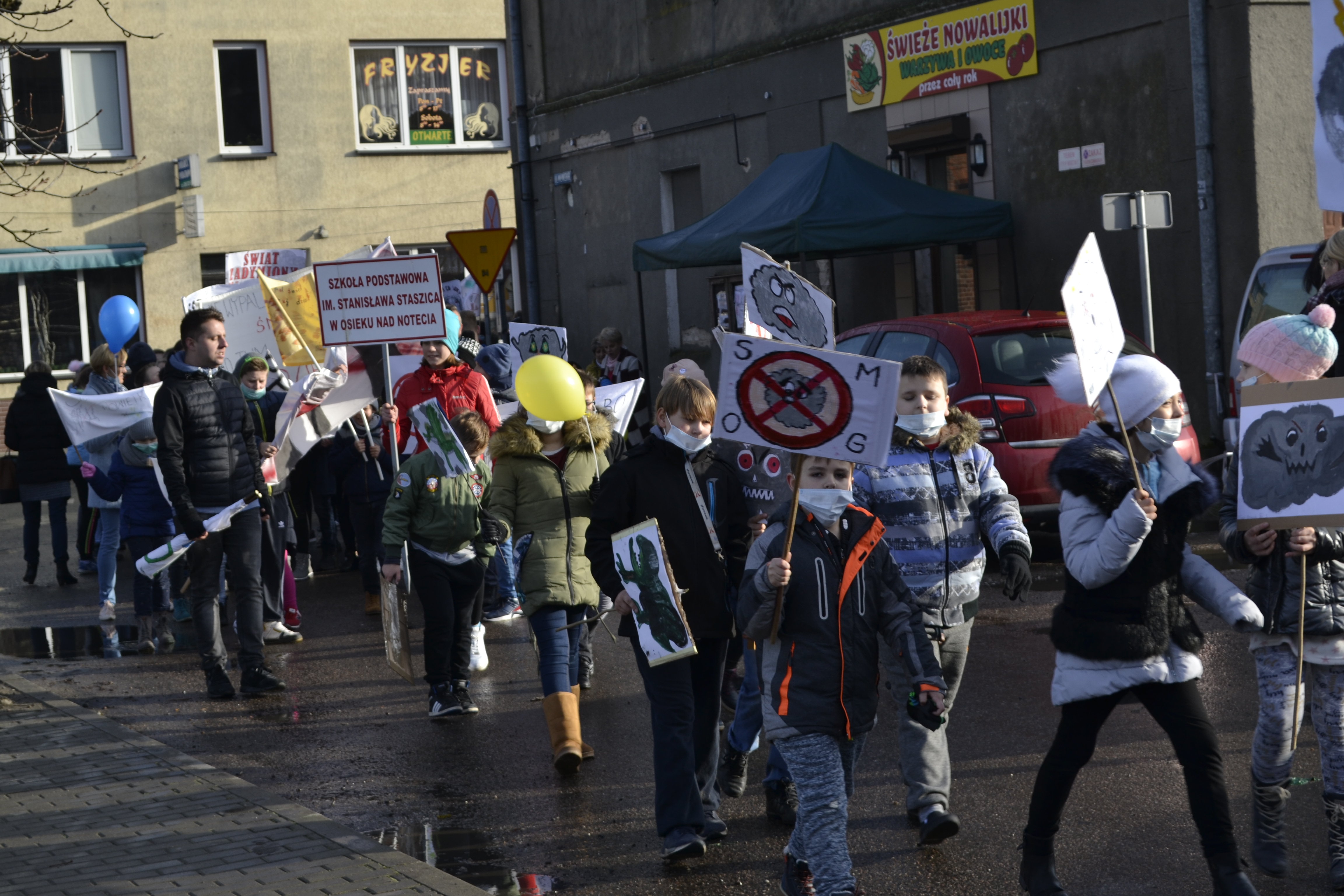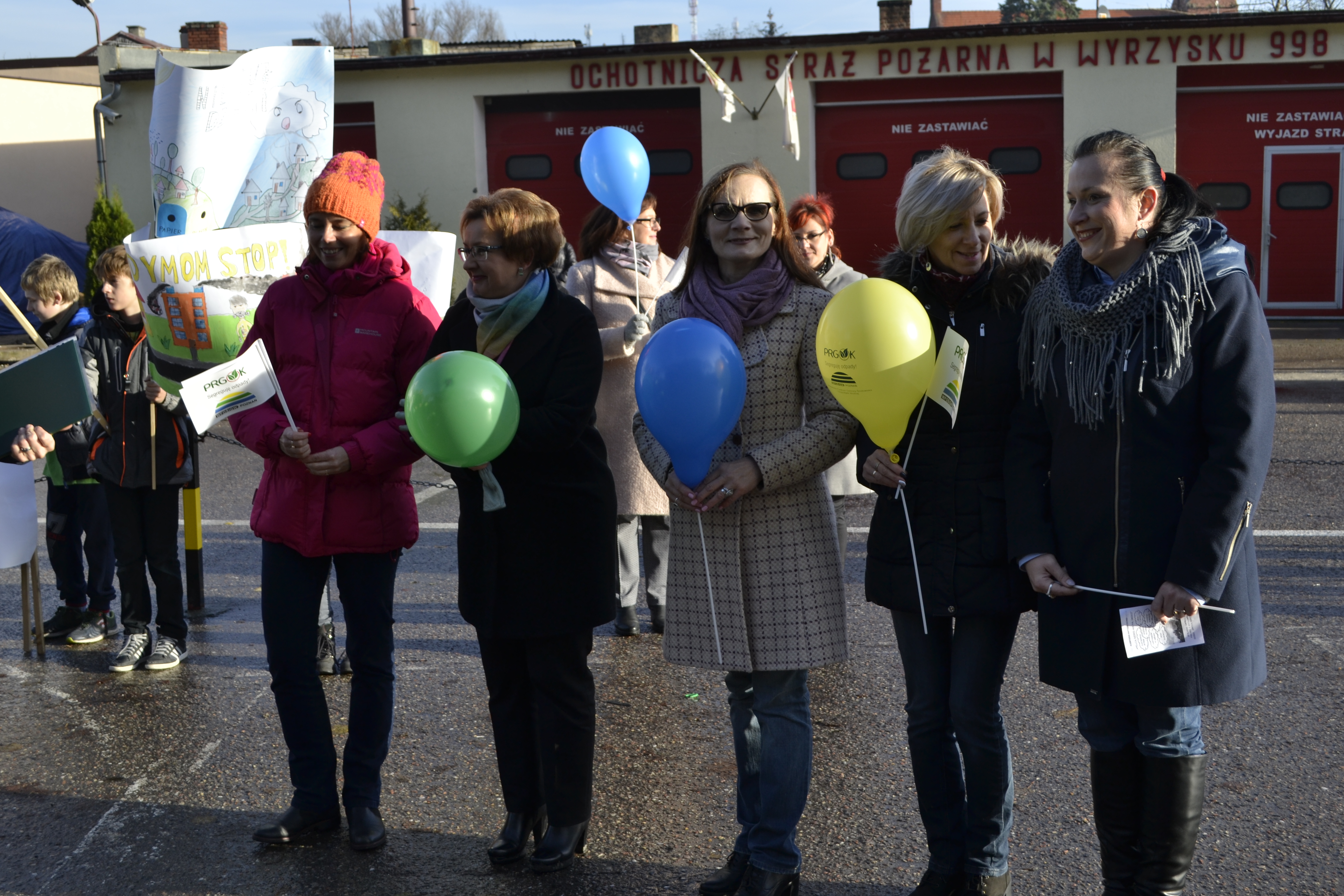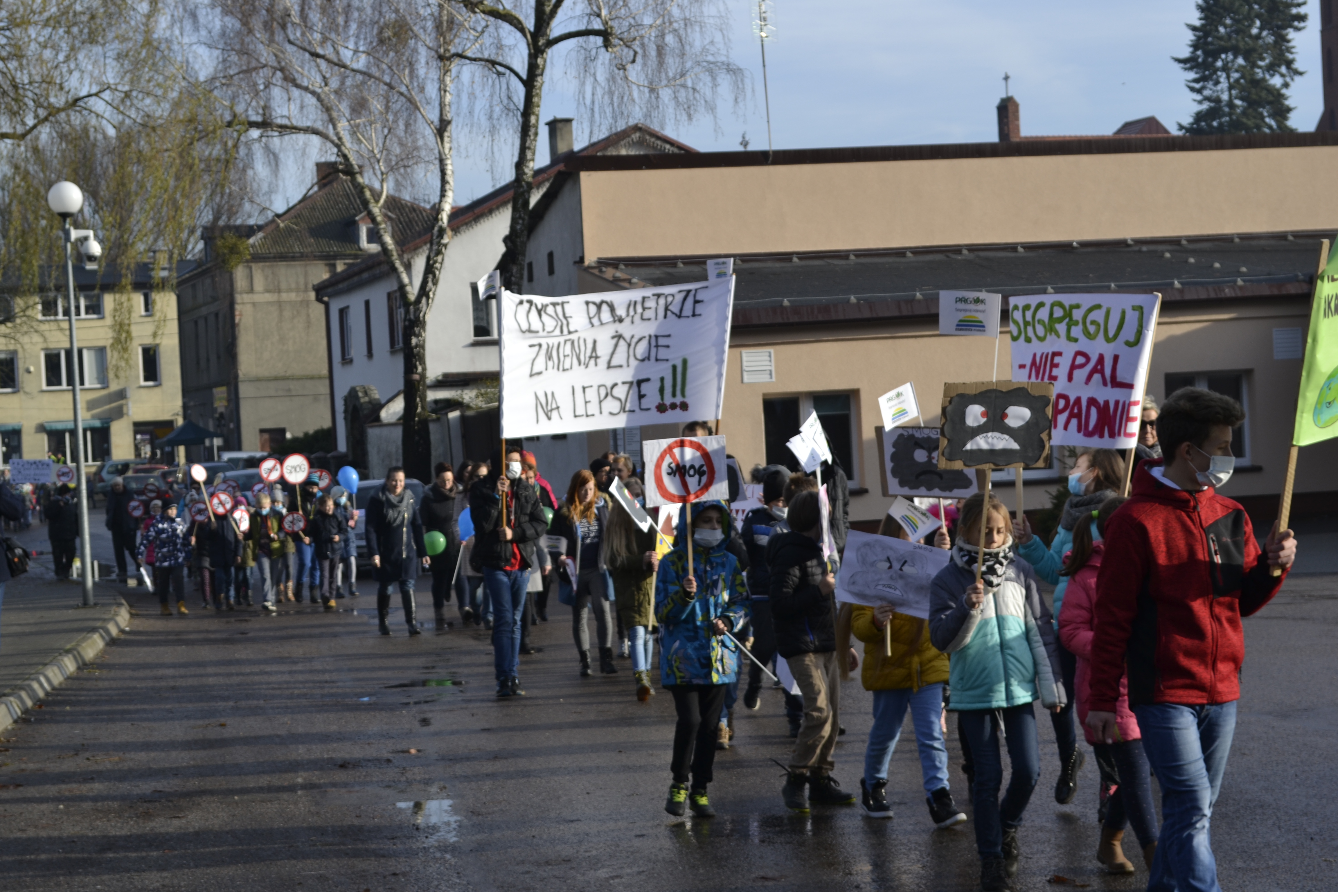 W marszu, obok Szkoły Podstawowej z Wyrzyska, wzięli udział również uczniowie szkół z naszej gminy: z Osieka n/Not., Kosztowa, Falmierowa, Glesna i Rudy. Nie zabrakło także przedszkolaków. Uczestnicy marszu, który rozpoczął się na boisku szkoły podstawowej na ul. Parkowej, a następnie przeszedł przez centrum Wyrzyska, nieśli ze sobą własnoręcznie wykonane transparenty z hasłami potępiającymi palenie śmieci oraz propagującymi walkę ze smogiem. Dzieci i młodzież skandowała też hasła zachęcające do walki z zatruwaniem powietrza spowodowanym przez spalanie w domowych piecach odpadów komunalnych i plastiku. Na czele pochodu maszerowała klasa V b ze Szkoły Podstawowej im. Powstańców Wielkopolskich w Wyrzysku, należąca do „Drużyny Zielonych”, którą swoim patronatem objął PRGOK. Powiewały chorągiewki i kolorowe baloniki, rozlegały się dźwięki gwizdków. Przechodnie i mieszkańcy Wyrzyska otrzymywali od uczniów ulotki, specjalnie przygotowane przez nich na tę akcję. Uczestnicy marszu w proteście przeciwko smogowi mieli założone maseczki. Klasa patronacka V b przygotowała prelekcję na antysmogową i zaśpiewała piosenkę „Drużyny Zielonych”, kiedy wszyscy uczestnicy marszu zebrali się na targowisku miejskim.