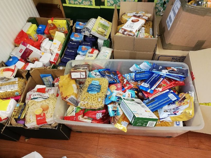 Przedmiotem zbiórki były artykuły codziennej potrzeby takie jak: kasza, mąka, cukier, makaron, ryż, płatki kukurydziane, herbata, słodycze oraz konserwy mięsne i rybne.