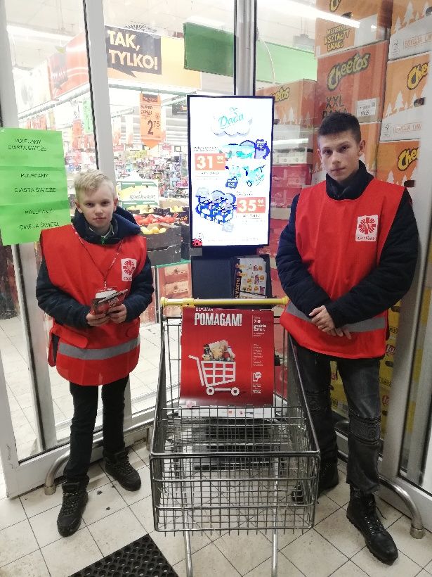 Z zebranych produktów spożywczych przygotowane zostaną paczki żywnościowe przeznaczone dla rodzin będących w trudnej sytuacji materialnej. W tym charytatywnym przedsięwzięciu udział wzięło 17 wolontariuszy. Wielkie podziękowania należą się Kierownictwu i Pracownikom sklepu „Biedronka”, Państwu Grochowskim, Państwu Łassa oraz Pani Bożenie Grzanka, właścicielom sklepów, bez których niemożliwe byłoby przeprowadzenie akcji.