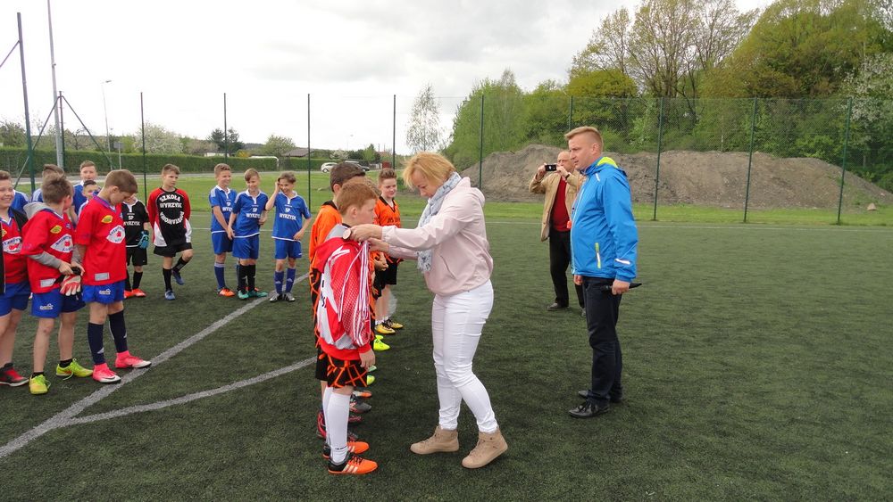 Pogoda w ten dzień dopisała, a mecze były zacięte i wyrównane. Z naszej gminy wystartowały cztery drużyny: SP Falmierowo, SP Kosztowo, SP Osiek i SP Wyrzysk, które grały ze sobą systemem „każdy z każdym” 2 x 7 minut. Na pierwszym miejscu rozgrywki zakończyła szkoła ze Szkoły Podstawowej w Wyrzysku, która wygrała wszystkie mecze i zdobyła komplet punktów. Ekipa wystąpiła w składzie: Filip Kuliński, Jakub Gregor, Oliwier Kasprzyk, Oskar Makoś, Karol Jagodziński, Adam Mrotek, Jakub Betański, Rafał Duda, Bartosz Michałek i Bartosz Chwiłka. Opiekunem drużyny jest pan Cezary Gdaniec. Drugie miejsce wywalczyła Szkoła Podstawowa z Kosztowa. Trzecie miejsce zdobyła Szkoła Podstawowa z Falmierowa, a IV Szkoła Podstawowa z Osieka. Za pierwsze, drugie i trzecie miejsce uczniowie zostali nagrodzeni medalami i pucharami, a za zajęcie czwartego miejsca szkoła otrzymała pamiątkową statuetkę. Zawodnicy z SP Wyrzysk, którzy na co dzień trenują w klubie „Krajna”, otrzymali złote medale, a kapitan naszej drużyny, Karol Jagodziński, z rąk organizatora turnieju odebrał piękny puchar. Osobną statuetkę dla najlepszego obrońcy turnieju otrzymała jedyna dziewczyna w tym turnieju, a była nią Anna Wojciechowska z SP Kosztowo.