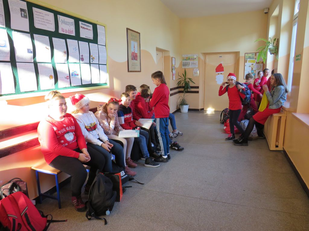 W przeddzień tradycji mikołajkowej na korytarzach Szkoły Podstawowej im. Powstańców Wielkopolskich w Wyrzysku królował kolor czerwony.