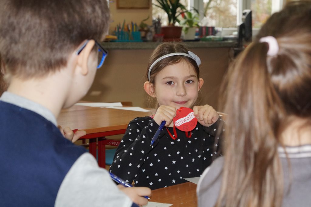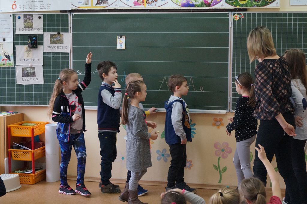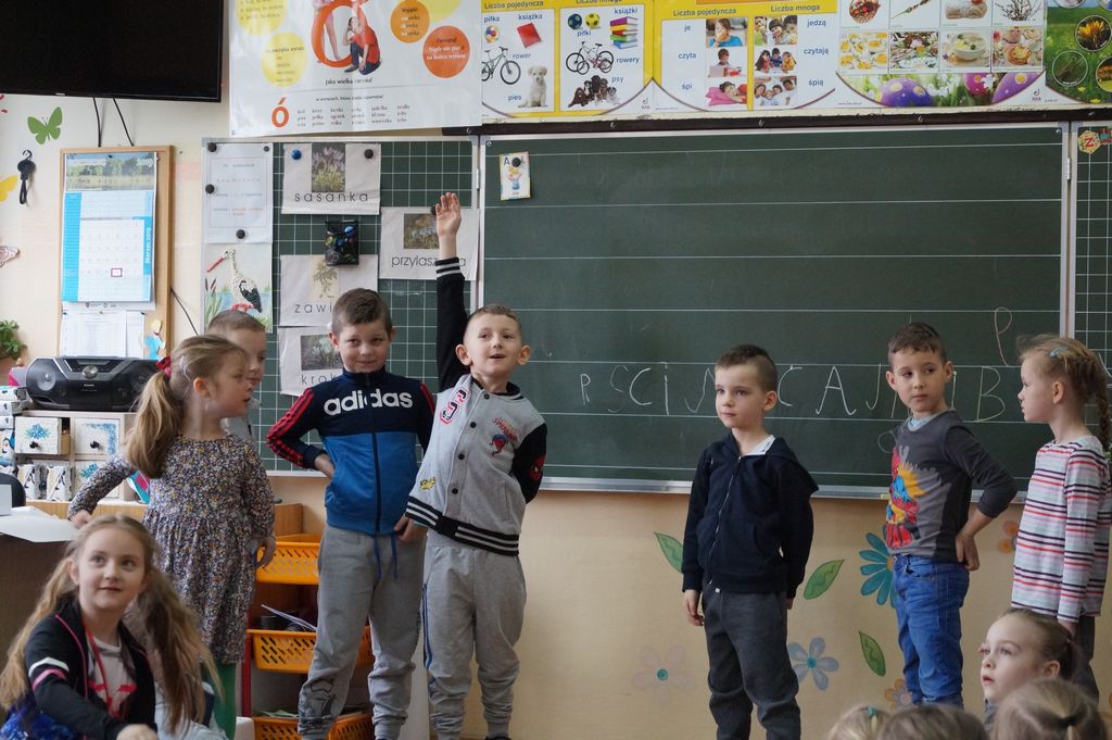Dnia 29.03.2019r. uczniów klasy II a odwiedziły dzieci z grupy przedszkolnej „Sówki”. Przybyły na zaproszenie jednej z mam przedszkolaka, która pracuje w naszej szkole. Sześciolatki miały okazję bliżej poznać pracę nauczyciela, tym bardziej, że we wrześniu staną się uczniami. Dzieci z zaciekawieniem słuchały czytanego fragmentu książki, pisały na tablicy, odgadywały zagadki, rozwiązywały krzyżówkę, wspólnie śpiewały i bardzo miło razem spędziły czas. Podczas pożegnania słychać było słowa „do zobaczenia wkrótce”.