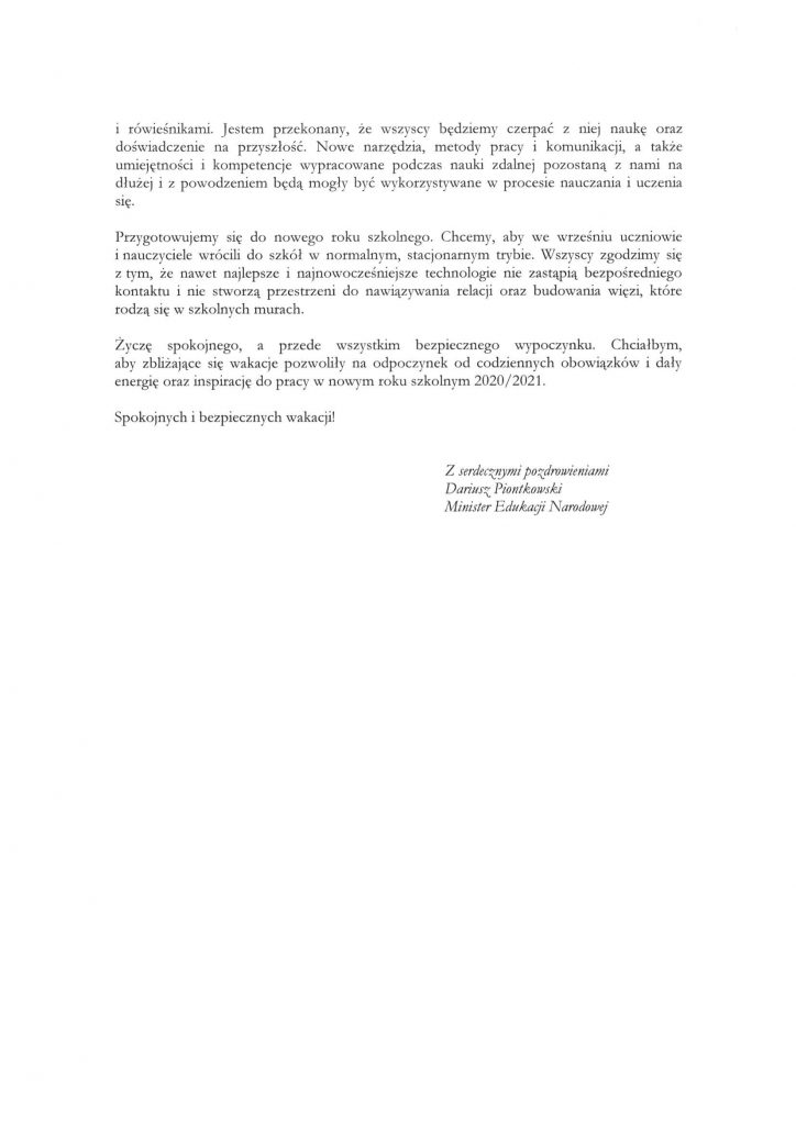 3. Życzenia od Pani Burmistrz i Ministra Edukacji Narodowej
