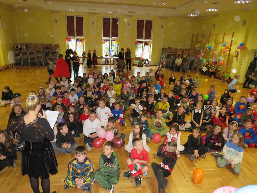 Bal rozpoczął się polonezem, podczas którego wszyscy uczestnicy prezentowali wspaniałe przebrania i kostiumy. Swoją obecnością zaszczyciły nas pani dyrektor Danuta Buryta-Arndt oraz pani wicedyrektor Małgorzata Dróbka-Jiers. W balu uczestniczyły również panie pedagog: Urszula Lach i Paulina Łuka. Wystrój sali wprowadził wszystkich w radosny nastrój oraz zachęcił do wesołej zabawy. Słynny taniec ,,kaczuszek”, ,,Chocolate” oraz mnóstwo hitów sprawiło, że wszyscy bez wyjątku bawili się znakomicie. Uczennice z klasy 3a zaprezentowały układ taneczny, zachęcając wszystkich do wspólnego tańca. Nie zabrakło również konkursów. Oj, ale się działo… taniec na gazecie, z balonem i szarfą to tylko niektóre z nich. Wodzirejem tego balu została pani Lidia Troczyńska, która zachęcała dzieci do tańca i wspólnej zabawy.