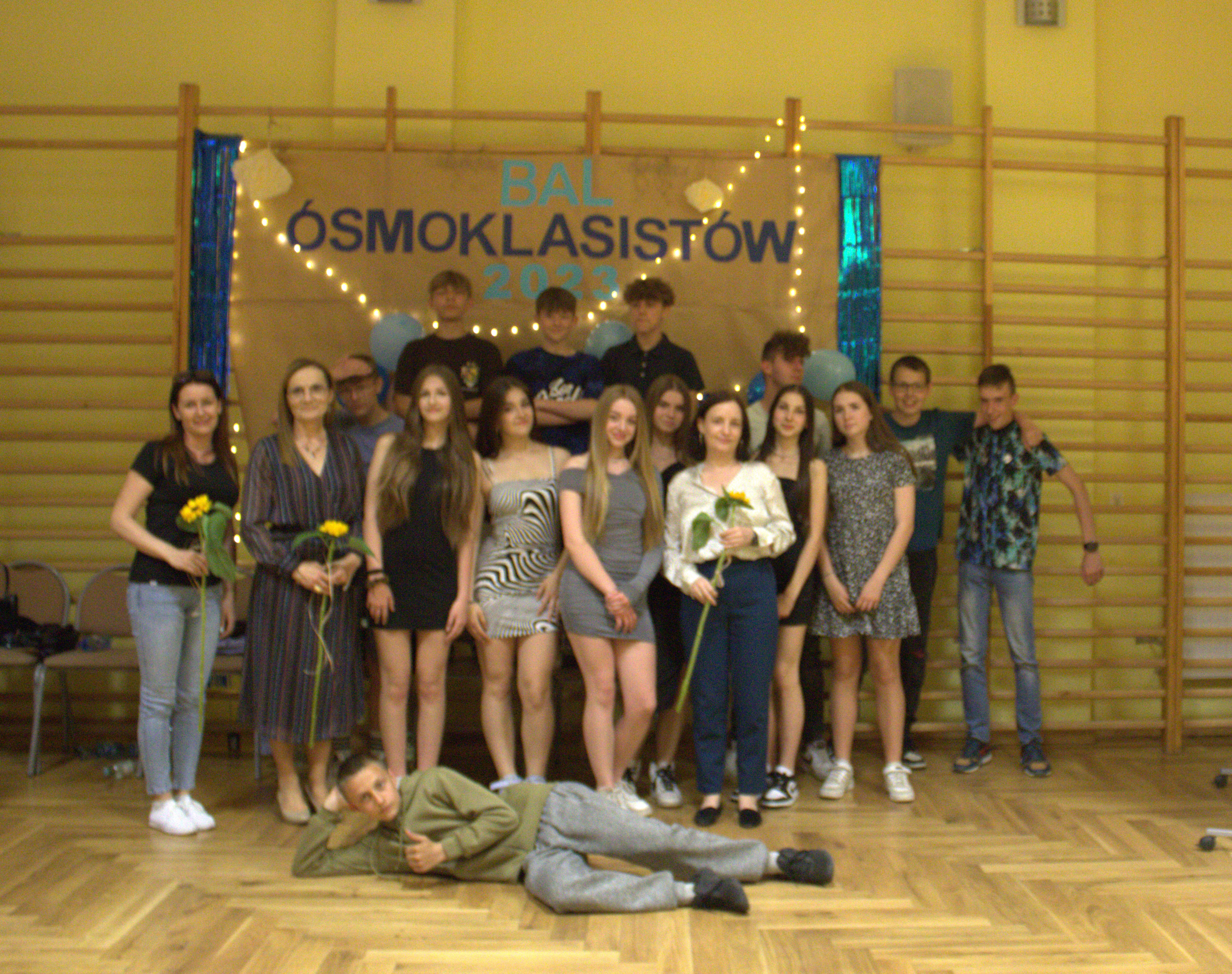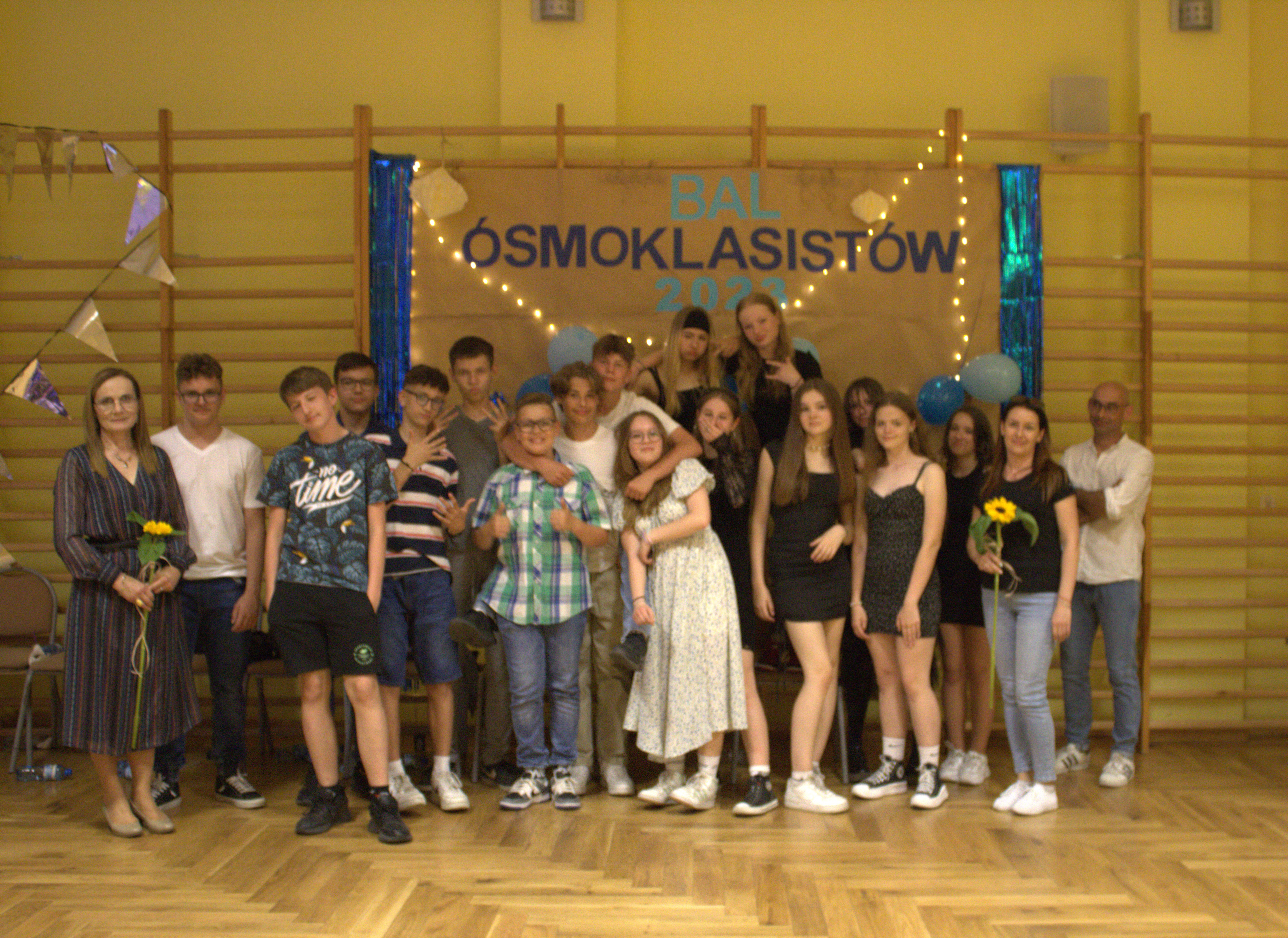 Uczciliśmy w ten sposób zakończenie edukacji w szkole podstawowej. Jest to ważny etap w naszym życiu, ponieważ od teraz każdy z nas ma możliwość zdecydowania, jaką drogą chce pójść. Miło było więc na chwilę oderwać się od trudnych wyborów. Zabawa była bardzo udana. Towarzyszył nam i umilał czas muzyką pan Adam Polley, za co dziękujemy. Podczas zabawy mogliśmy częstować się słodkościami przygotowanymi przez rodziców, jak również pizzą i lemoniadą. Przede wszystkim jednak mieliśmy możliwość spędzić wspólnie czas. Pozostaną miłe wspomnienia oraz pamiątkowe zdjęcia.
