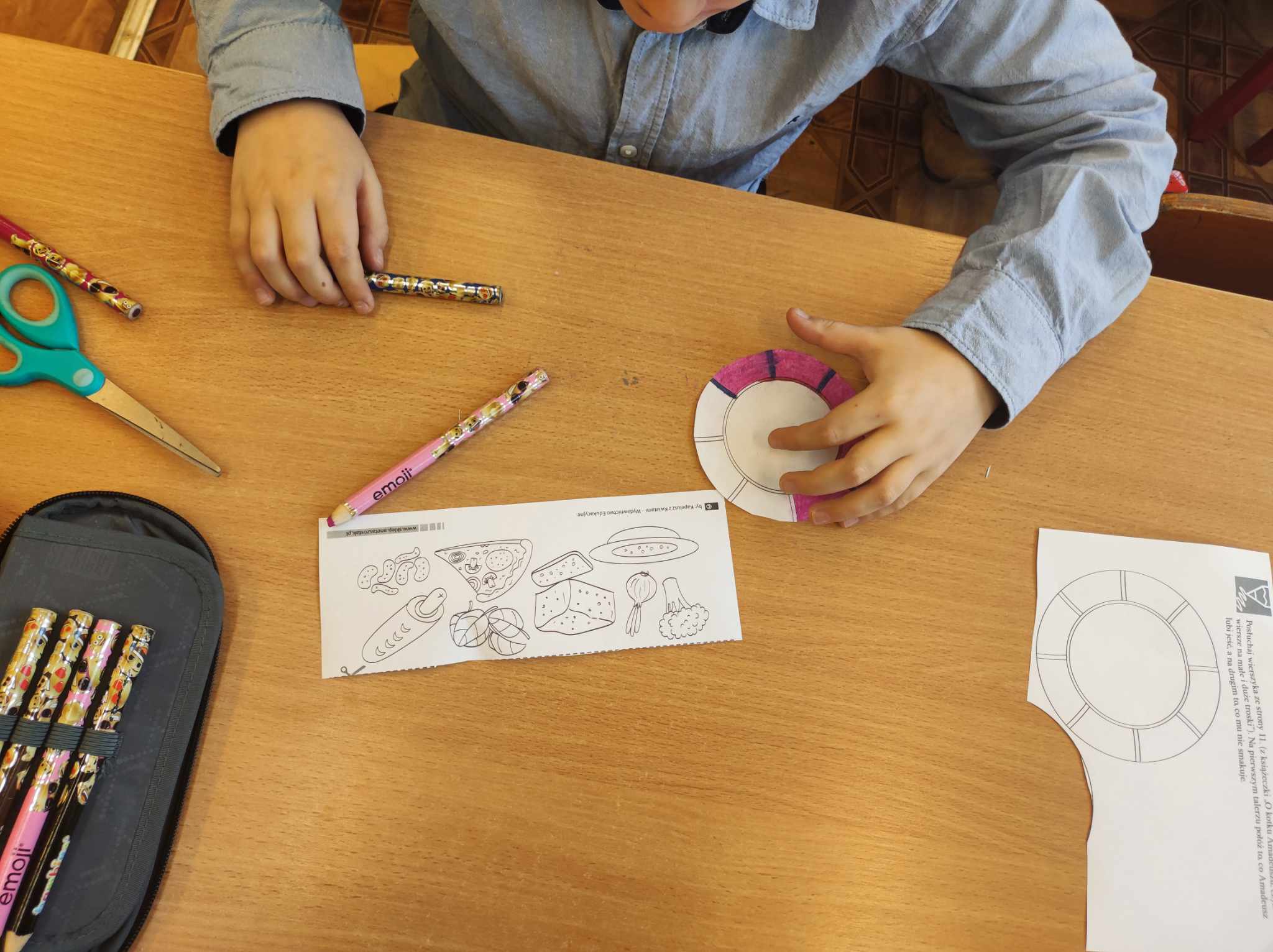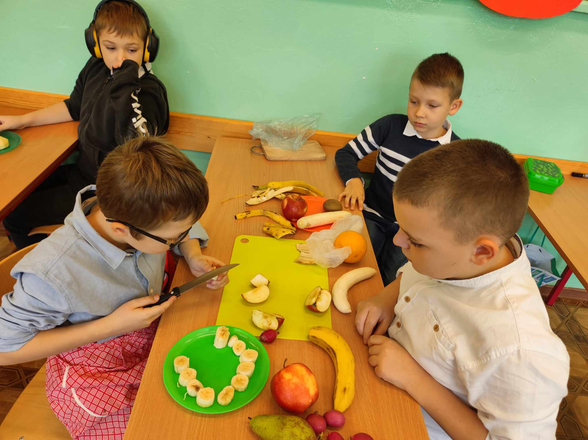 W świat powyższych wartości wprowadził uczniów znany kot Amadeusz – główny bohater wierszy Łukasza Tartasa. Tym razem przeczytano wierszyk pt. „O kotku Amadeuszu, który grymasił przy jedzeniu.” Po odczytaniu tekstu uczestnicy projektu porozmawiali na temat postępowania kota i jego zachowania przy jedzeniu. Dzieci wymieniły dania, które bohater uwielbiał i te, których nie lubił. Szybko doszły do wniosku, że to co mu smakowało niekoniecznie było zdrowe, a to czego tak nie cierpiał, zawierało mnóstwo składników zdrowotnych. W związku z powyższym uczniowie przygotowali posiłki na dwóch talerzach. Na jednym umieścili tylko zdrowe produkty, na drugim zaś te niezdrowe. Ponadto sami ułożyli przepis na swoją zdrową sałatkę, którą później według niego skomponowali. Dzieci uczestnicząc w zajęciach miały możliwość poznania produktów, w których znajdują się cenne składniki odżywcze i które powinny znaleźć się w ich dziennym menu. Poznały także piramidę żywnościową oraz obejrzały prezentację o zdrowym stylu życia. Ciekawym i zarazem zabawnym punktem zajęć było napełnianie przez dzieci swoich brzuszków zdrowymi produktami, których wyboru dokonali sami spośród dużej ilości owoców, warzyw i innych produktów. Wszystkie produkty żywnościowe umieszczone na talerzach trafiły do stworzonego domu Amadeusza, a dokładnie do wykreowanej przez uczniów kuchni kota. Do zdrowych nawyków dołączono także ćwiczenia ruchowe do różnych piosenek. Dzieciom najbardziej spodobała się piosenka o marchewce, do której mogli zatańczyć. Taniec ten stanowił miły przerywnik śródlekcyjny podczas listopadowych zajęć.