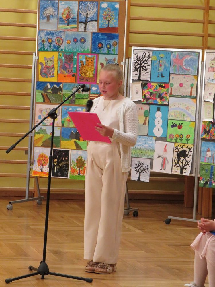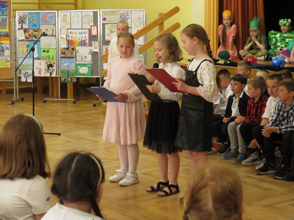 Na zakończenie uczennice z Małego Samorządu zadawały gościom zagadki. Okazało się, że nie było żadnego problemu z ich rozwiązaniem. Po wysłuchaniu i obejrzeniu części artystycznej każda grupa przedszkolna miała możliwość zrobienia sobie pamiątkowego zdjęcia z uczniami – małymi artystami. Następnie wspólnie wyruszono na zapoznawczy spacer po szkole. Przedszkolaki zobaczyły, jak wyglądają klasy, sala komputerowa oraz „Magiczny dywan”. Na zakończenia goście otrzymali zakładki do książki zawierające m.in. adres szkoły. Spotkanie odbyło się w bardzo przyjaznej atmosferze, a na zakończenie rozbrzmiało głośne „Do zobaczenia”.