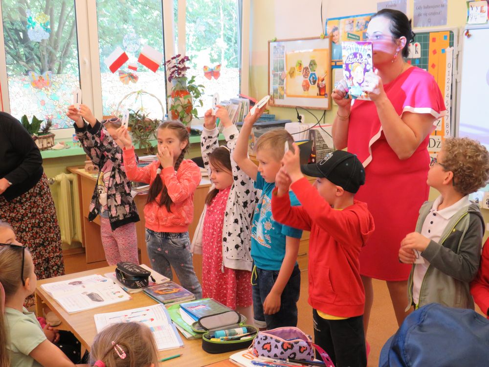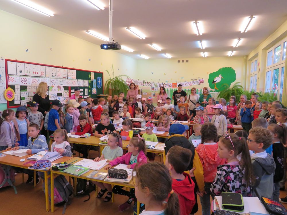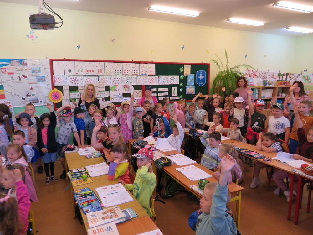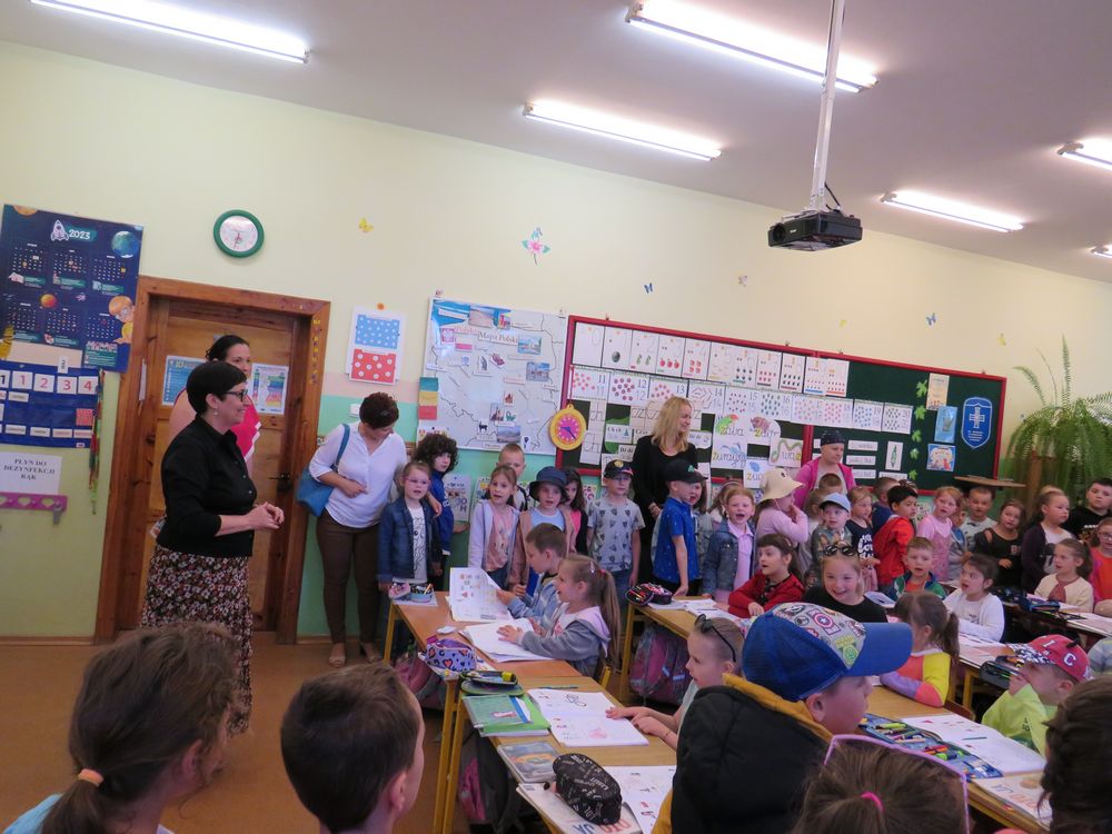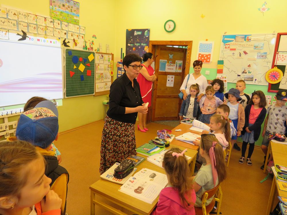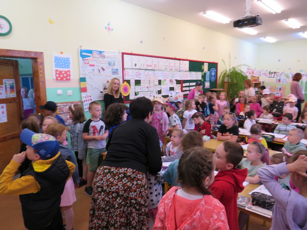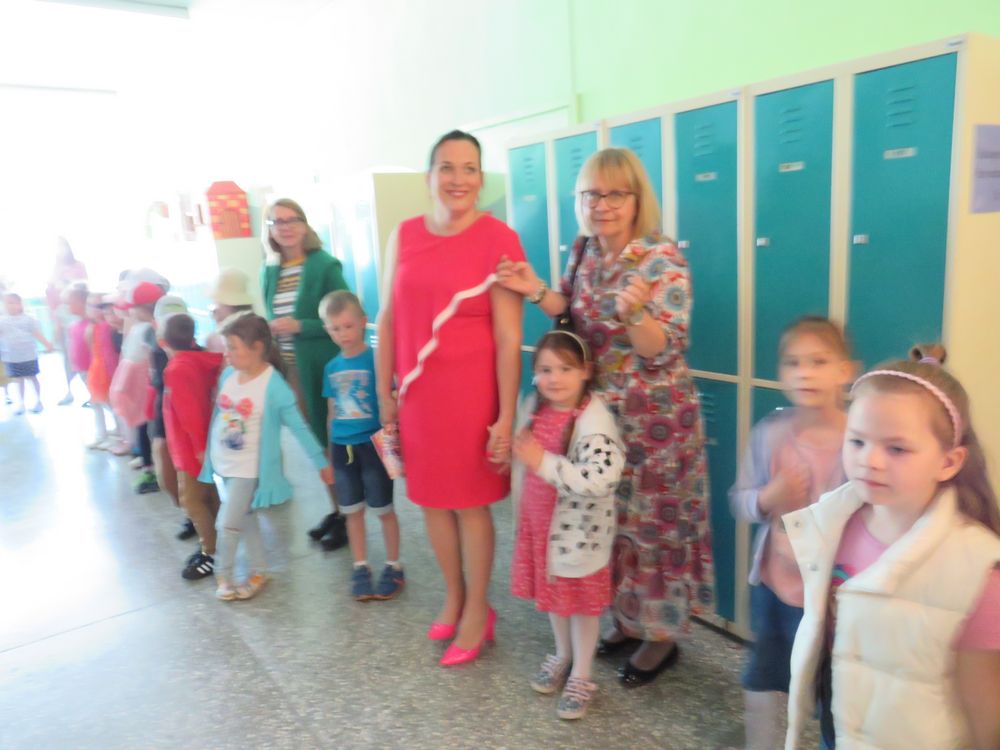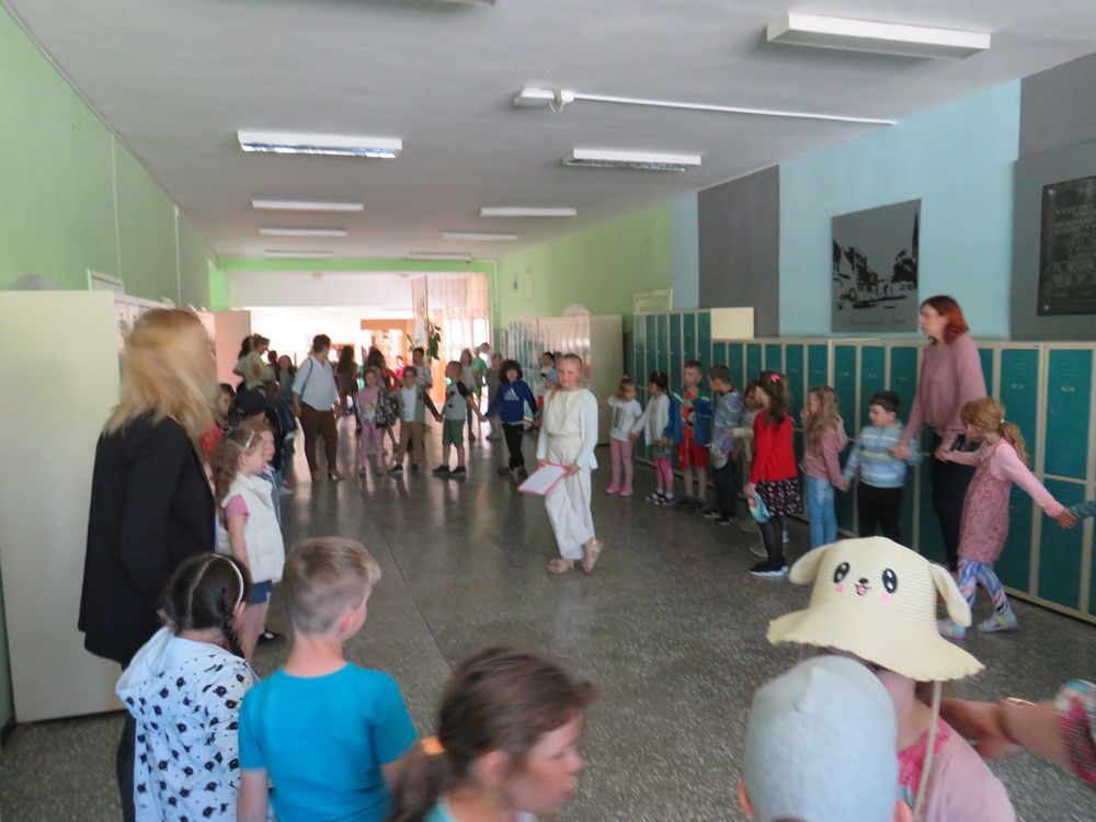 Na zakończenie uczennice z Małego Samorządu zadawały gościom zagadki. Okazało się, że nie było żadnego problemu z ich rozwiązaniem. Po wysłuchaniu i obejrzeniu części artystycznej każda grupa przedszkolna miała możliwość zrobienia sobie pamiątkowego zdjęcia z uczniami – małymi artystami. Następnie wspólnie wyruszono na zapoznawczy spacer po szkole. Przedszkolaki zobaczyły, jak wyglądają klasy, sala komputerowa oraz „Magiczny dywan”. Na zakończenia goście otrzymali zakładki do książki zawierające m.in. adres szkoły. Spotkanie odbyło się w bardzo przyjaznej atmosferze, a na zakończenie rozbrzmiało głośne „Do zobaczenia”.