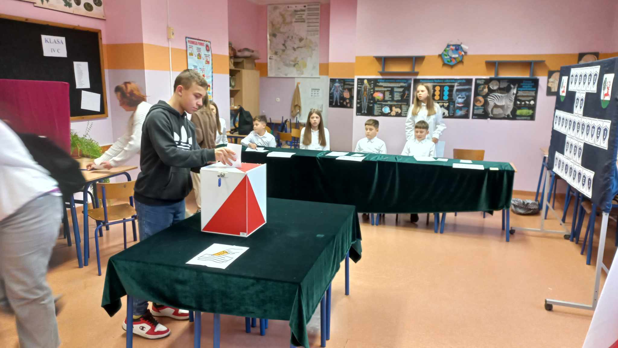 W okręgu nr 1 w Szkole Podstawowej im. Powstańców Wielkopolskich w Wyrzysku od rana panowała atmosfera święta demokracji. Była to piękna lekcja wychowania obywatelskiego. Wyborcy postanowili poprzeć swoich kandydatów, o czym świadczy wysoka frekwencja – głosowało 85% uprawnionych. Nad prawidłowym przebiegiem wyborów czuwała komisja wyborcza w składzie: Pola Badura, Aleksandra Wawrzyniak, Nadia Turek, Wojciech Kaczka, Hubert Kaczka, Kacper Kaczka, Martyna Kucharska i Zuzanna Gibała. Uczniowie tłumnie odwiedzali lokal wyborczy. Do rywalizacji o 6 mandatów stanęło 12 kandydatów. Wszyscy mieli okazję zaprezentować się publicznie przed społecznością szkolną i prowadzić kampanię wyborczą. Był to wielki dzień samorządności, a uczniowie doświadczyli  namiastki prawdziwych wyborów. Ostatecznie najwięcej głosów i mandaty radnych-elektów MRM w Wyrzysku z naszej szkoły uzyskali: Hubert Semrau, Magdalena Jańczak, Magdalena Walczak, Maciej Tomko-Nowak, Gabriela Duber i Zofia Pietrasik.