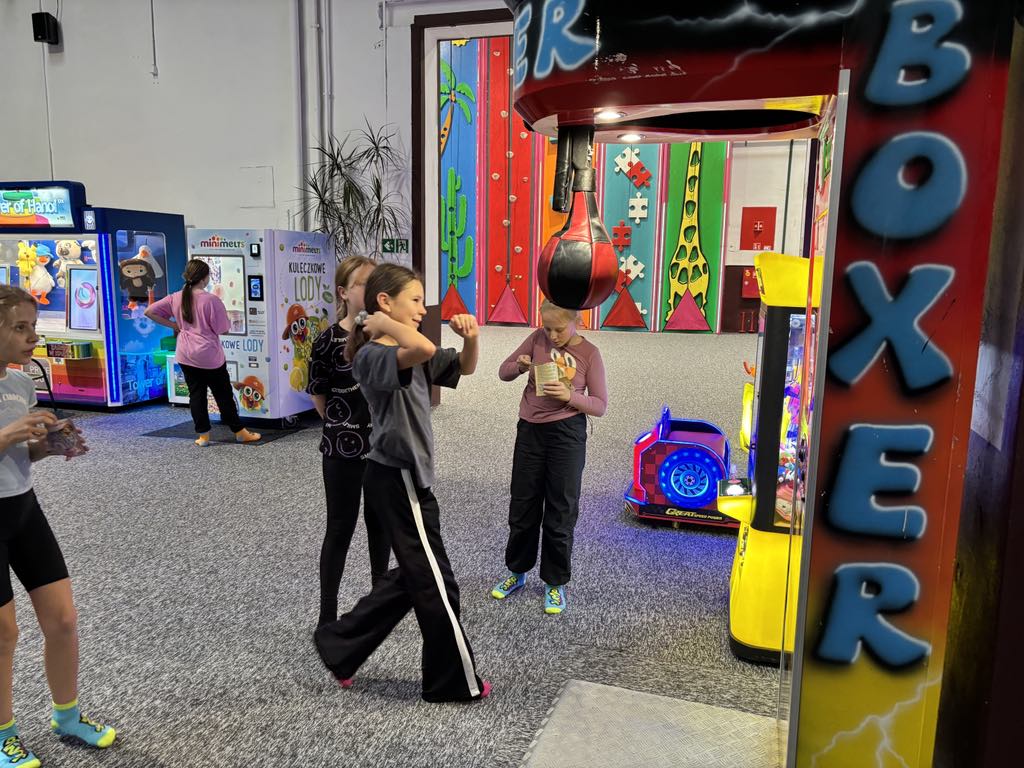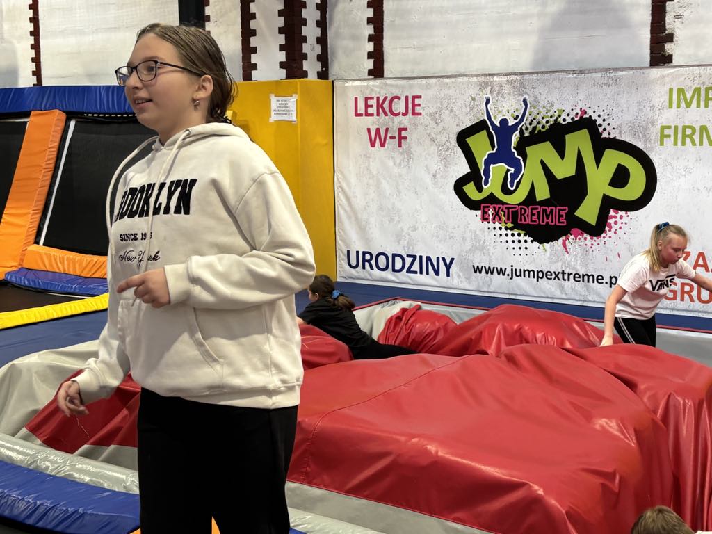 Po zasilaniu emocjonalnym nadszedł czas na wzmocnienie kondycji fizycznej. Piąto- i szóstoklasiści zyskali taką szansę w parku trampolin, gdzie z niespożytą energią skakali, turlali się, wspinali na przeszkody linowe i po pionowych ściankach, kąpali w basenach z piłeczkami albo jeździli na wrotkach. Wartością dodaną tych wszystkich wygibasów okazała się życzliwość, jaką okazywali sobie rówieśnicy, kibicując w pokonywaniu karkołomnych wyzwań.