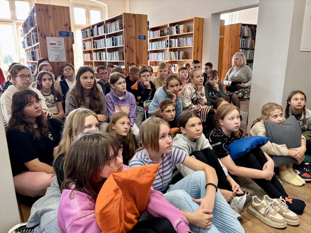 Na spotkanie autorskie z Marcinem Pałaszem uczniowie klasy piątej „a” już od miesiąca nie mogli się doczekać! W miniony czwartek dołączyli do nich koledzy i koleżanki z klas: piątej „b” oraz szóstej „c” i razem wybrali się do Piły, aby poznać autora lektury szkolnej pt. „Sposób na Elfa”. Opiekę nad uczniami sprawowały wychowawczynie: pani Anna Kozimor i pani Anna Panek oraz bibliotekarka-paniKatarzyna Chyła.