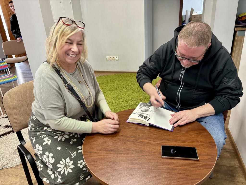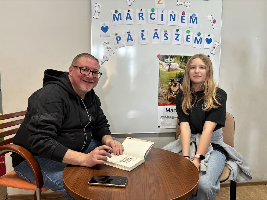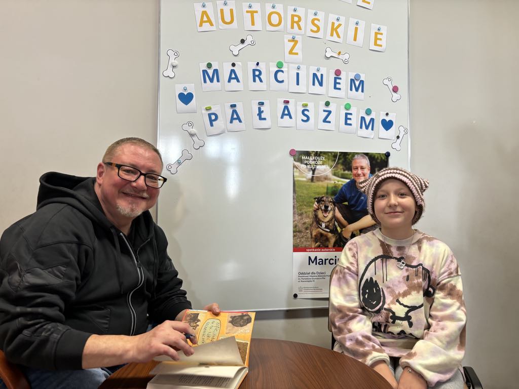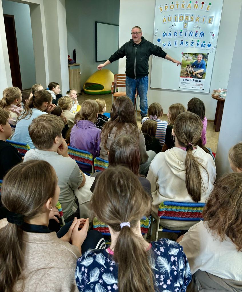 Marcin Pałasz okazał się być pełen pozytywnej energii i dobrego humoru, którymi szczodrze obdzielał czytelników swoich opowieści o niesfornym, za to sympatycznym psie Elfie. Sam Elf doczekał się już wydania siedmiu książek o nim, a niebawem ukaże się ósmy tom. Autor uchylił też rąbka tajemnicy, która stanowi hit dla wszystkich elfomaniaków: możemy spodziewać się ekranizacji przygód czworonożnego bohatera! Póki co uczestnicy spotkania ucieszyli się z możliwości otrzymania autografu pisarza i pamiątkowych fotografii.