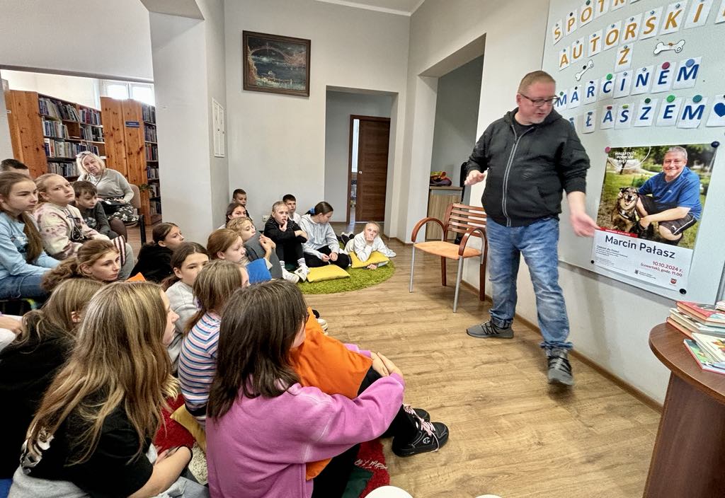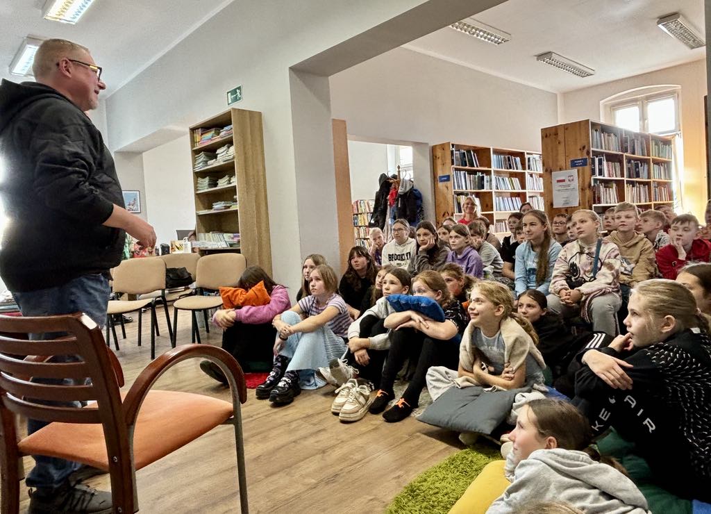 Na spotkanie autorskie z Marcinem Pałaszem uczniowie klasy piątej „a” już od miesiąca nie mogli się doczekać! W miniony czwartek dołączyli do nich koledzy i koleżanki z klas: piątej „b” oraz szóstej „c” i razem wybrali się do Piły, aby poznać autora lektury szkolnej pt. „Sposób na Elfa”. Opiekę nad uczniami sprawowały wychowawczynie: pani Anna Kozimor i pani Anna Panek oraz bibliotekarka-paniKatarzyna Chyła.
