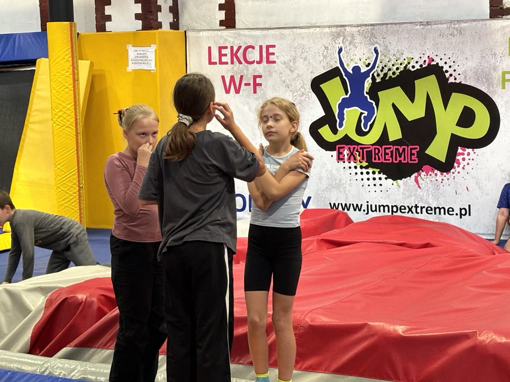 Po zasilaniu emocjonalnym nadszedł czas na wzmocnienie kondycji fizycznej. Piąto- i szóstoklasiści zyskali taką szansę w parku trampolin, gdzie z niespożytą energią skakali, turlali się, wspinali na przeszkody linowe i po pionowych ściankach, kąpali w basenach z piłeczkami albo jeździli na wrotkach. Wartością dodaną tych wszystkich wygibasów okazała się życzliwość, jaką okazywali sobie rówieśnicy, kibicując w pokonywaniu karkołomnych wyzwań.