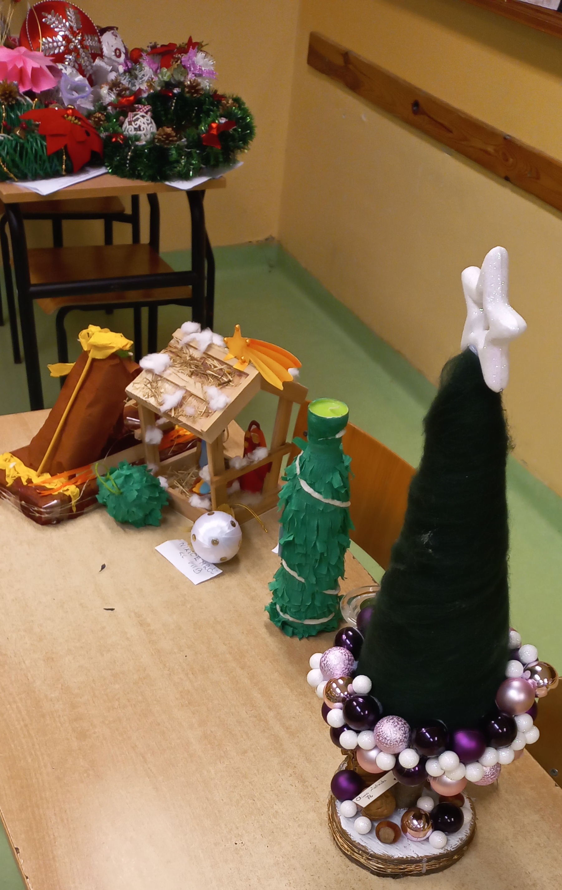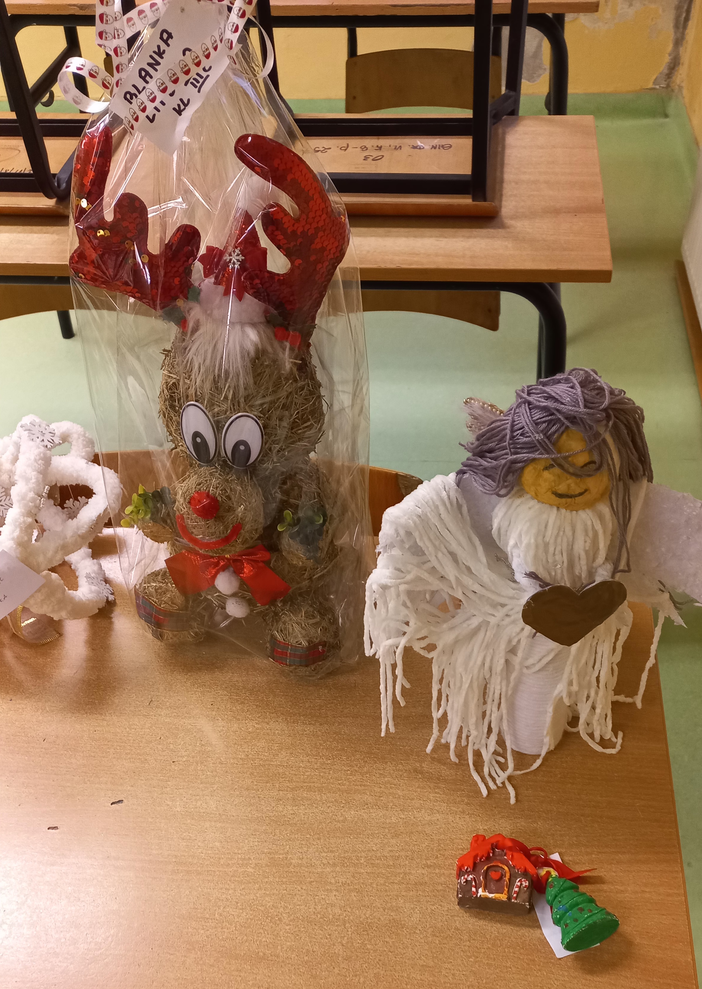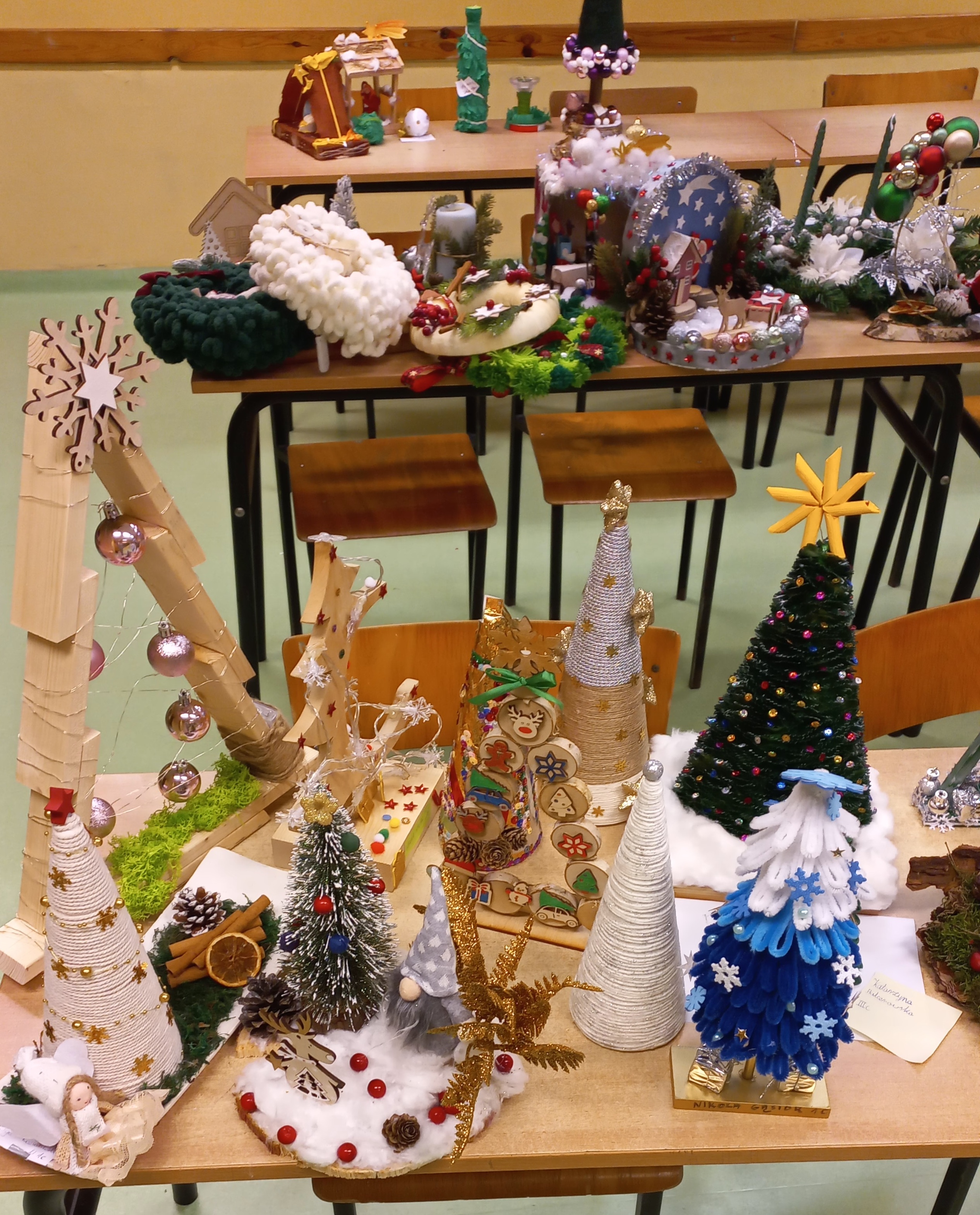Najpiękniejsze bombki w klasach I-III wykonali: Szymon Sobczak z kl. III c oraz Krystian Sobczak z kl. II a. Drugie miejsce przypadło Zuzannie Kistowskiej z kl. II b, trzecie – Ewie Dziewieczyńskiej z kl. II c. Najciekawszą choinkę wykonała Matylda Jasińska z kl. II a, drugie miejsce przypadło Jakubowi Tucholskiemu z kl. I a, trzecie – Samancie Boniowskiej z kl. I c. Wyróżniono prace: Poli Łassy z kl. II c, Hanny Hałas z kl. II d, Nicoli Gąsior z kl. I c, Brunona Francikowskiego z kl. I a, Klaudii Froń z kl. I d, Igi Rozlatowskiej z kl. I c, Igi Gajewskiej z kl. I d. W kategorii „Stroik świąteczny” pierwsze miejsce zajął Jakub Stefanów z kl. II c, drugie – Jakub Kowalski z kl. I a, trzecią lokatę uzyskała Marcelina Kuich z kl. II a. Wyróżniono prace: Zofii Doli z kl. II d, Igi Rozlatowskiej z kl. I c, Leny Kotarak z kl. II a, Jana Michalskiego z kl. I c, Zofii Wacholc z kl. I a. W kategorii „Anioł” pierwsze miejsce zdobyła Yeva Nedryha z kl. II b. Najpiękniejszą ozdobę wykonała Blanka Lipecka z kl. III c. Drugą lokatę przyznano Laurze Zych z kl. I c.