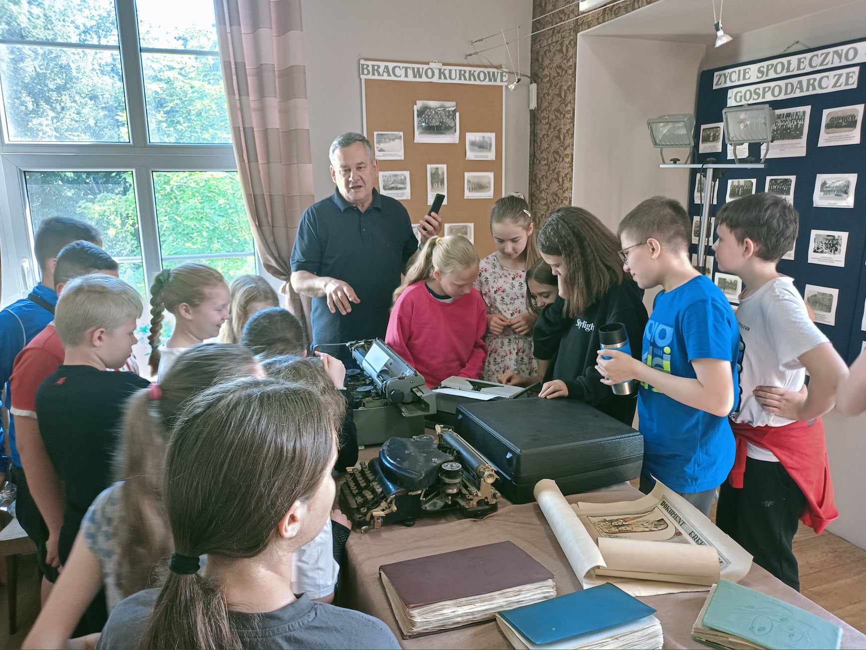 Czwartoklasiści z zainteresowaniem oglądali kolejne eksponaty. Niektóre z nich mogli dotknąć i sprawdzić ich działanie – te cieszyły się największą popularnością. Uczniowie poszukiwali na starych fotografiach domów, w których teraz mieszkają albo osób, które znają. Zdjęcia zainspirowały młodych wyrzyszczan do poznania legend związanych z tą ziemią. Okazali się też uważnymi czytelnikami tablic informacyjnych na terenie miasta. Na jednej z nich znaleźli błąd językowy, który zakłócał sens zdania, jednak oni poradzili sobie z jego rozszyfrowaniem. J