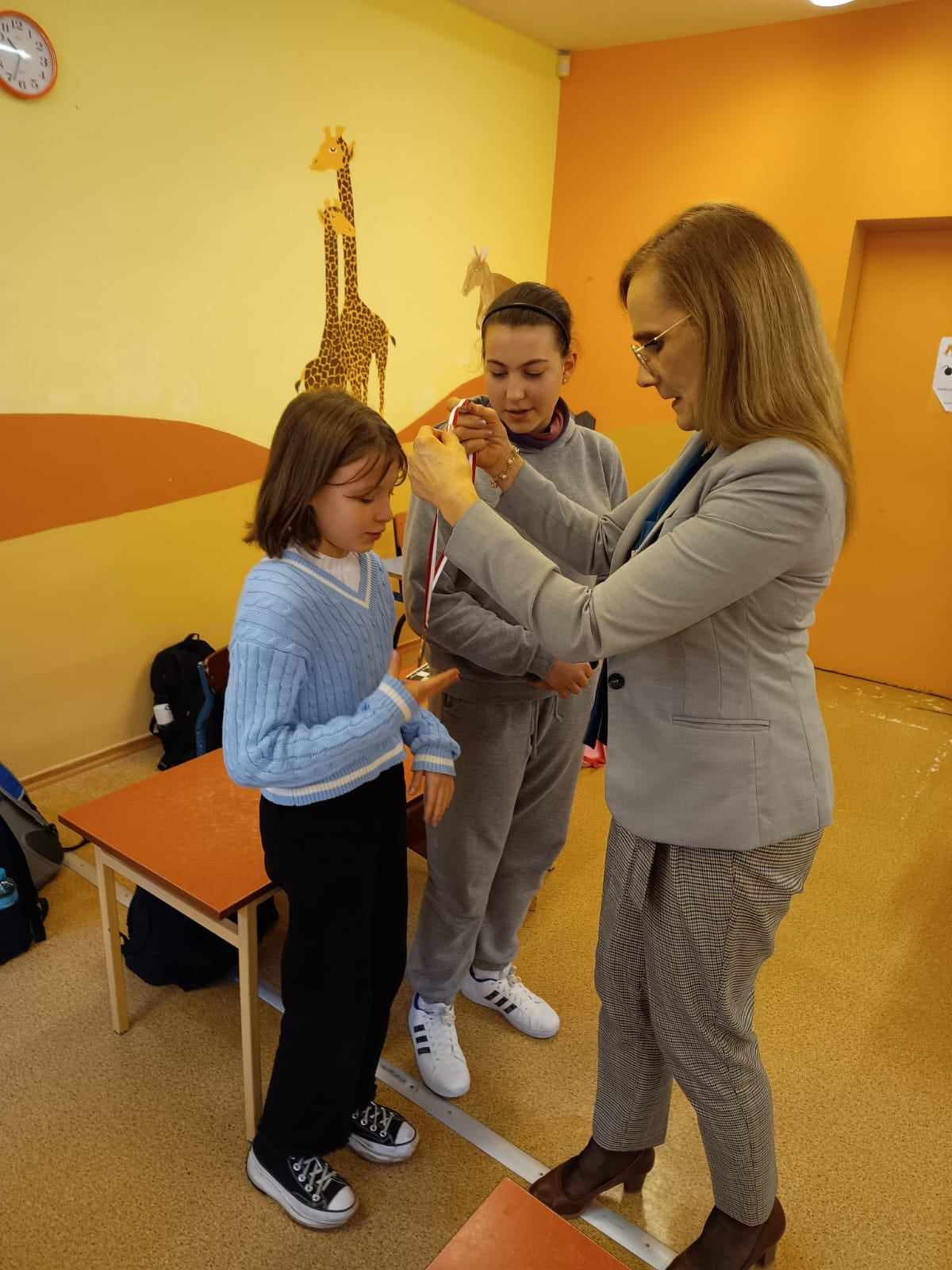 Zwycięzcom pogratulowała sukcesu i udekorowała medalami pani dyrektor Danuta Buryta-Arndt.