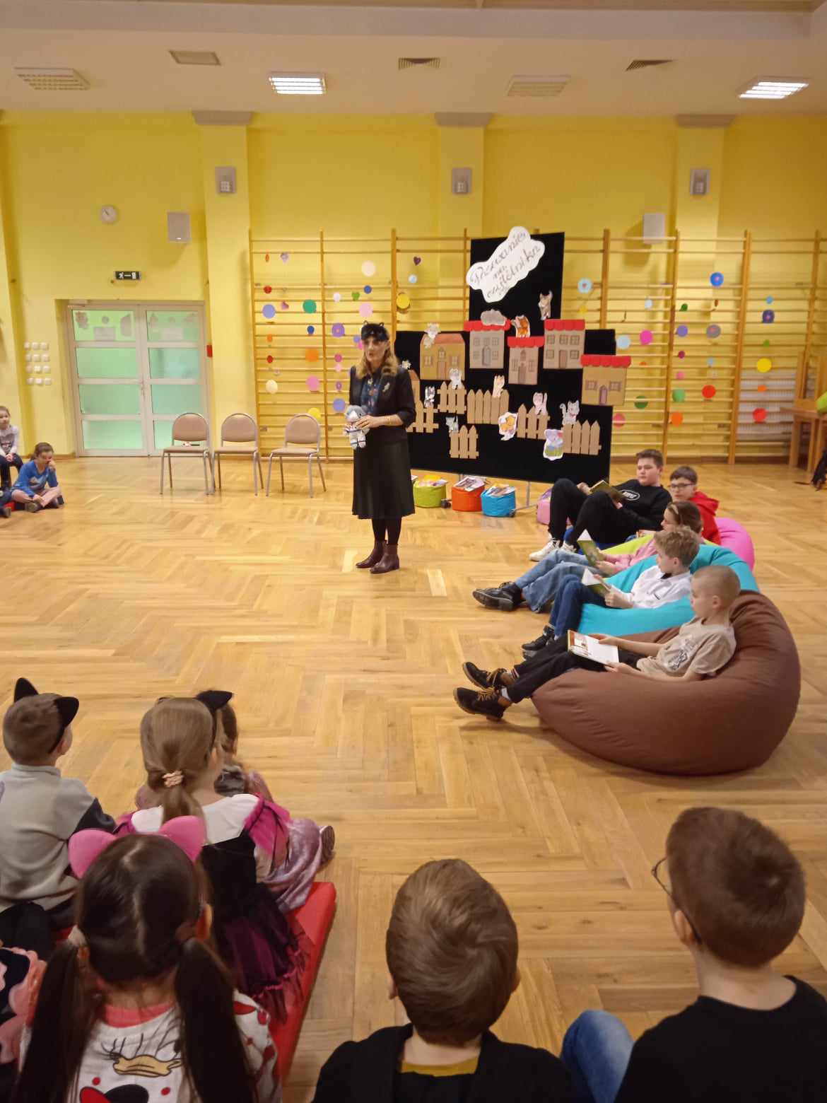 z daszków i mrugały do nas z ekranu wyświetlanej prezentacji. Ważną rolę tego dnia odegrała także miotła, a właściwie – szczotka do podłogi, która była jedną z bohaterek opowiadania