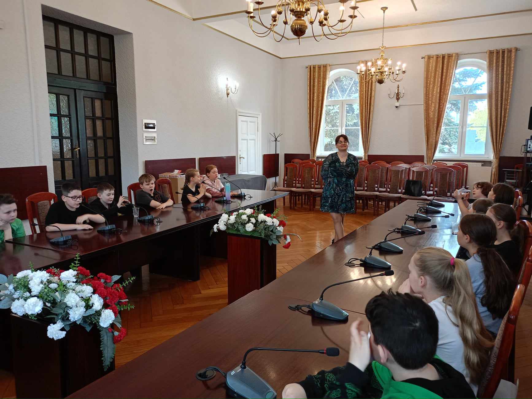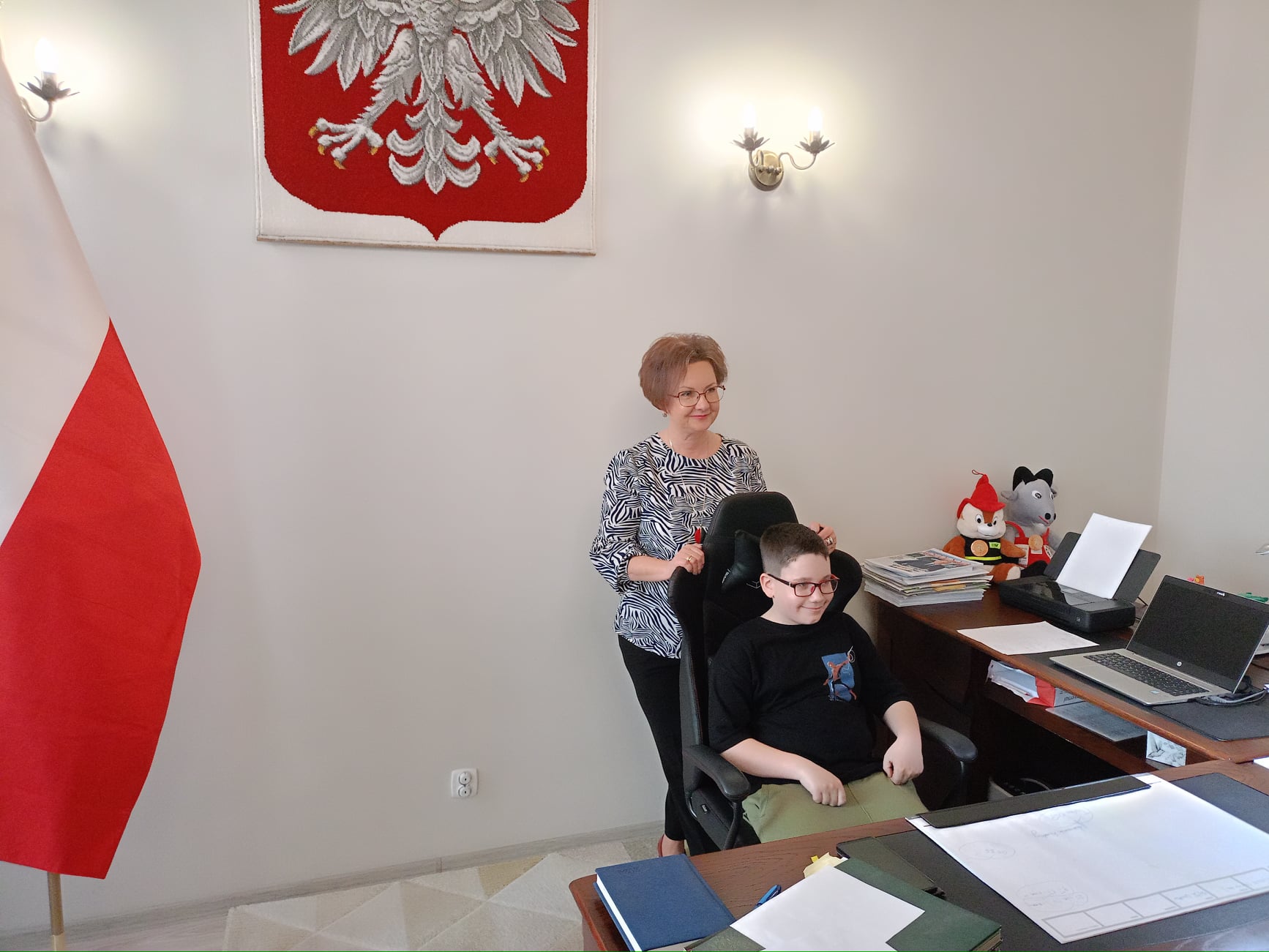 Najbardziej spodobał mi się stół prezydialny w sali sesyjnej. Wraz z moimi dwoma kolegami: Wiktorem i Mateuszem zajęliśmy sobie tam miejsca i wczuliśmy się w prowadzenie obrad rady. Panie uznały, że świetnie sprawdzamy się w tej roli. Kto wie, może w przyszłości do nich wrócimy?