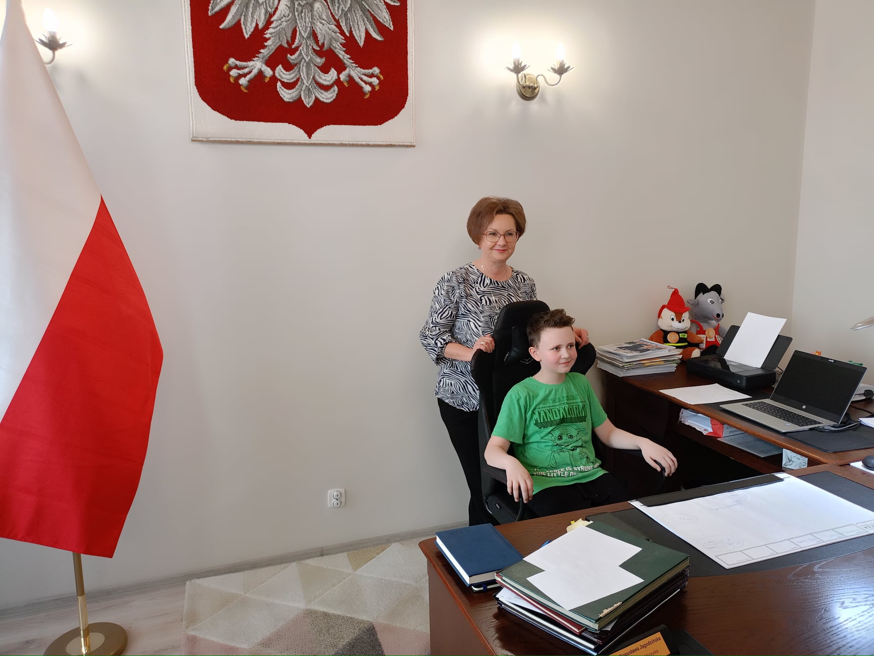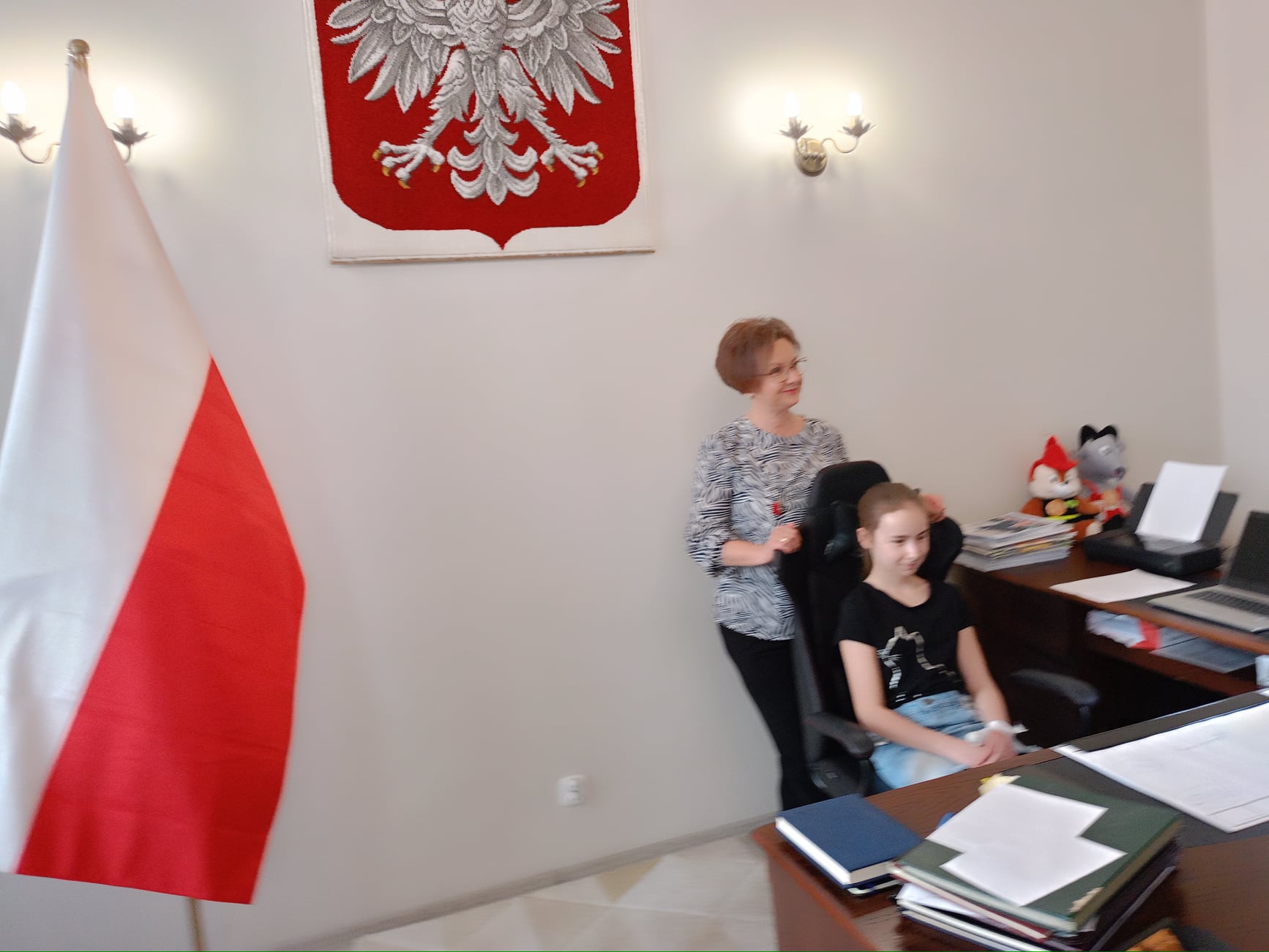 W urzędzie podobał mi się najbardziej gabinet Burmistrza. W biurze zafascynowało mnie zajmowanie się ważnymi dokumentami: podpisywanie milionowych umów albo odpisywanie na korespondencję. Mile zostałam zaskoczona również upominkiem w postaci mapki naszej gminy – z pewnością zrobię z niej użytek.