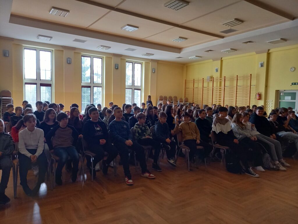 Najpierw delegacja uczniów, którzy jednocześnie są członkami Komisji Sportu i Spraw Społecznych Młodzieżowej Rady Miejskiej w Wyrzysku, wraz z opiekunem udali się pod obelisk gen. Władysława Andersa. Tutaj w towarzystwie władz samorządowych, kilku lokalnych delegacji, m.in. przedstawicieli Rady Rodziców działającej przy naszej szkole, złożyli kwiaty w hołdzie żołnierzom polskiego państwa podziemnego. Później starsi uczniowie zebrali się w sali widowiskowej i obejrzeli prezentację omawiającą kulisy powstania tego święta. W końcowej części obejrzeli trzy filmy w formie animacji przygotowane przez Instytut Pamięci Narodowej.