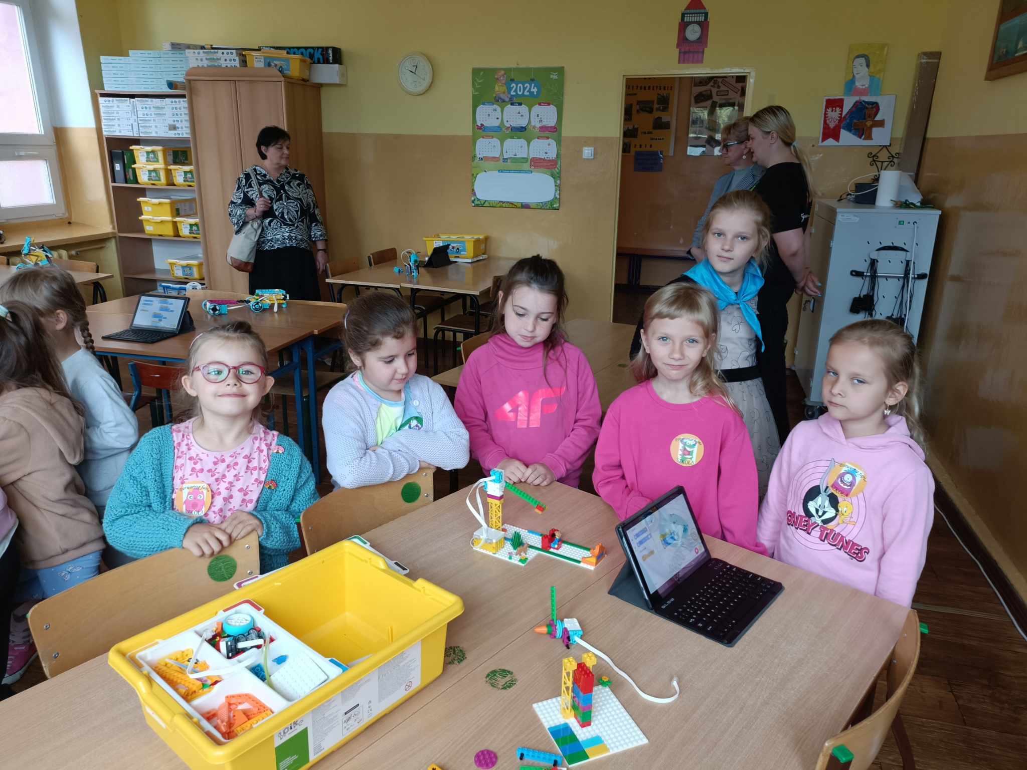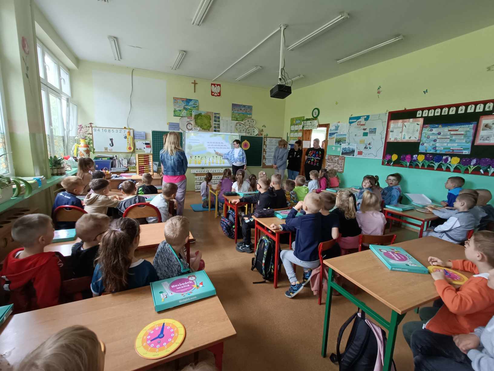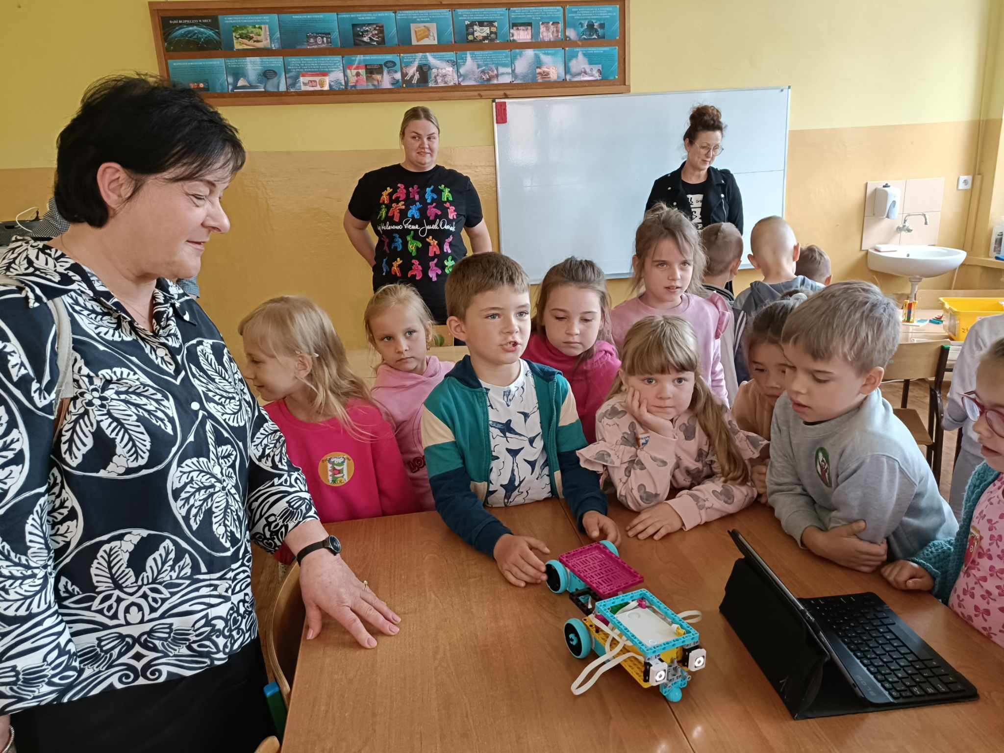 Następnie uczniowie w małych grupach zwiedzali szkołę i uczestniczyli w zajęciach przygotowanych przez nauczycieli z klas I-III. Dzieci zasiadły do szkolnych ławek, aby poczuć się jak uczniowie. Rozwiązywały zadania z wykorzystaniem różnych pomocy dydaktycznych, miały możliwość sterowana zestawem Lego Education Spike, a największą radość sprawiły im ćwiczenia na Magicznym Dywanie. Przy okazji zajęć przyszli uczniowie mogli poznać naszą szkołę i zobaczyć klasopracownie. Na pożegnanie nasi mili goście otrzymali drobne upominki w postaci zakładek do książek. Dziękujemy pani dyrektor Iwonie Pacała i paniom Wychowawczyniom z Publicznego Przedszkola nr 1 im. Chatka Puchatka w Wyrzysku za pozytywną odpowiedź na zaproszenie i odwiedzenie naszej placówki wraz z podopiecznymi. Dzięki odwiedzinom przedszkolaki poznały nowe otoczenie. Jak pokazuje nasze kilkuletnie doświadczenie takie spotkania przyczyniają się do zniwelowania stresu przed pójściem do szkoły. Mamy nadzieję, że to cenne doświadczenie pomoże dzieciom i ułatwi im przekroczenie progu szkoły we wrześniu!