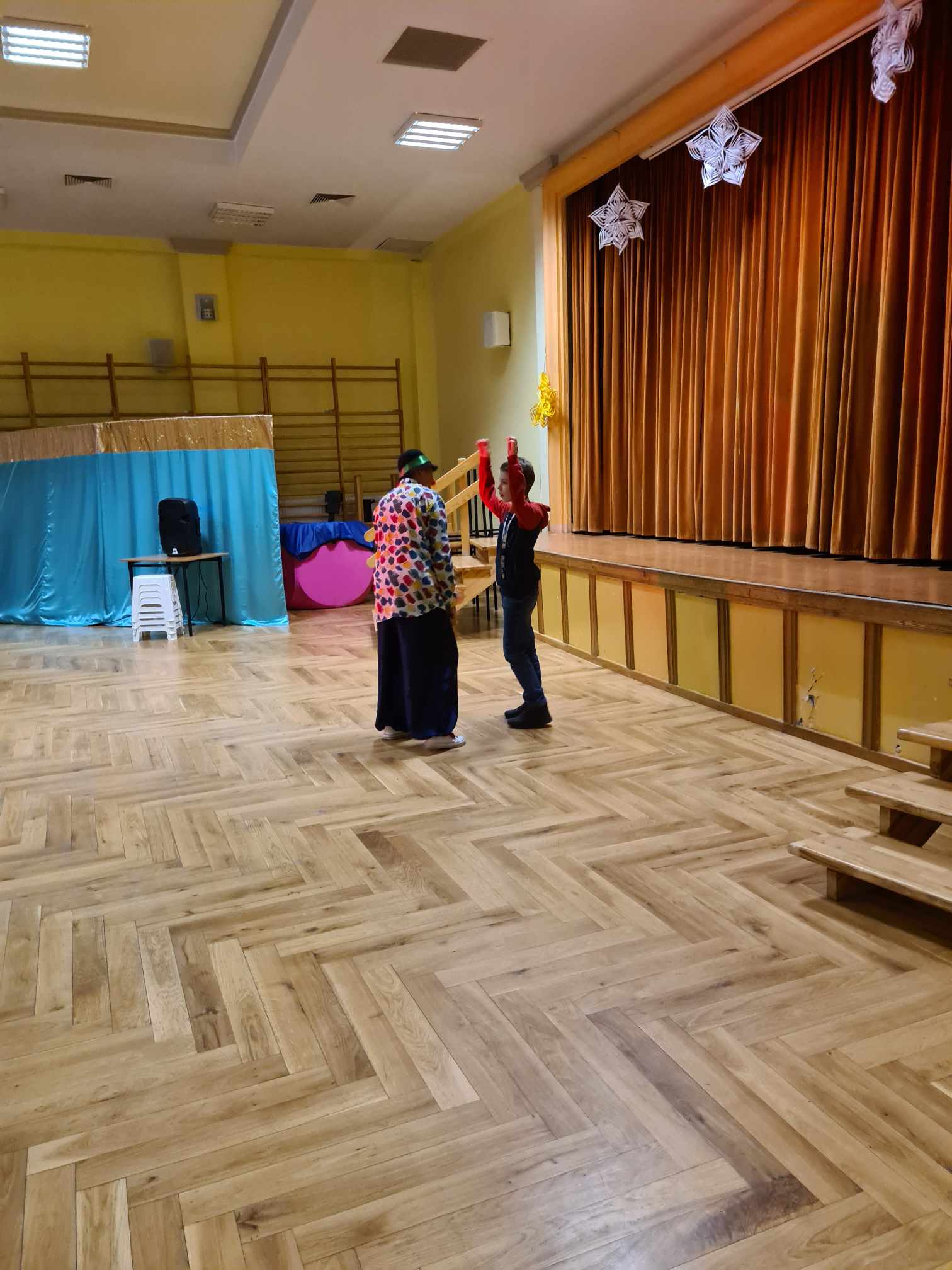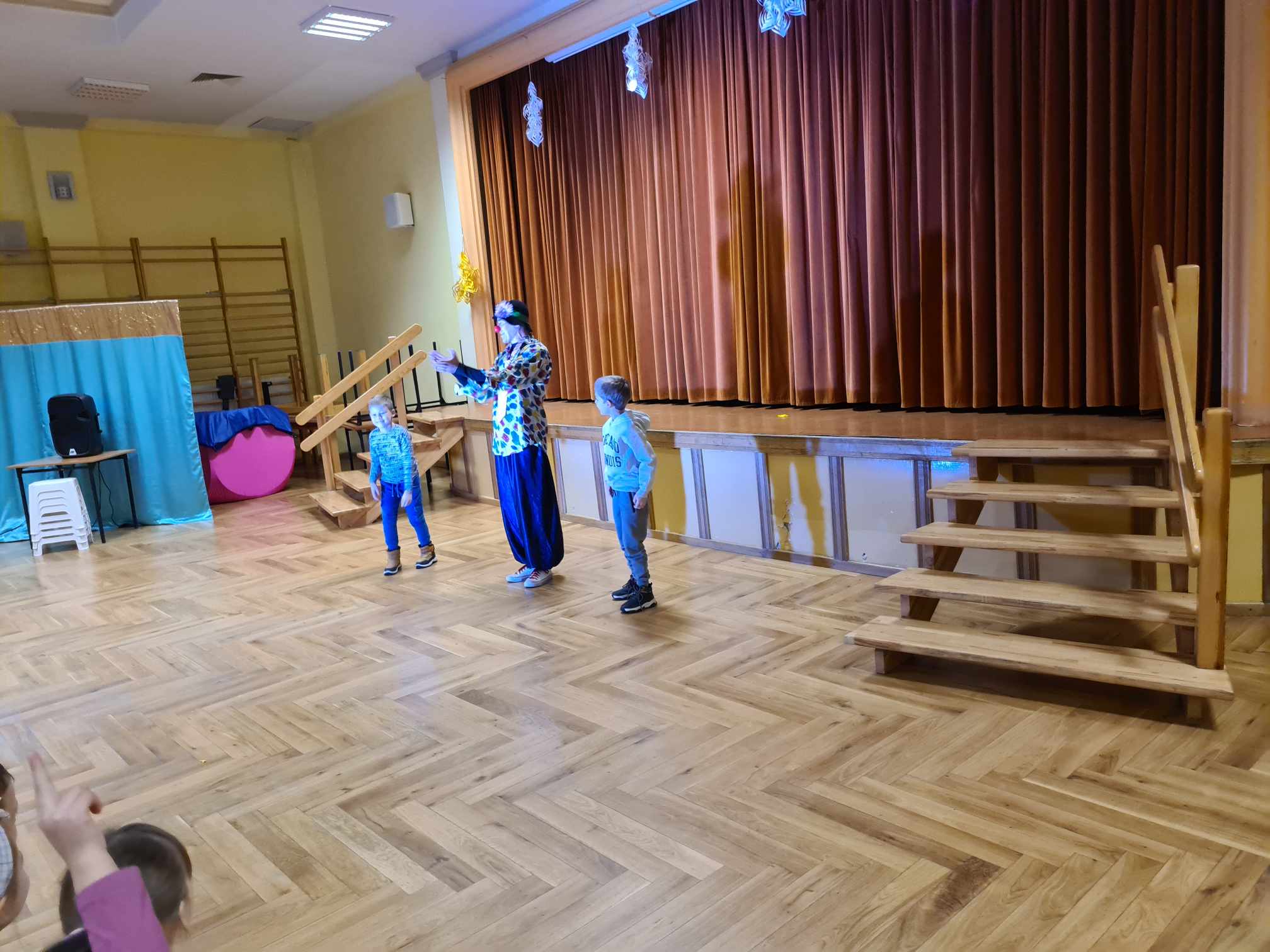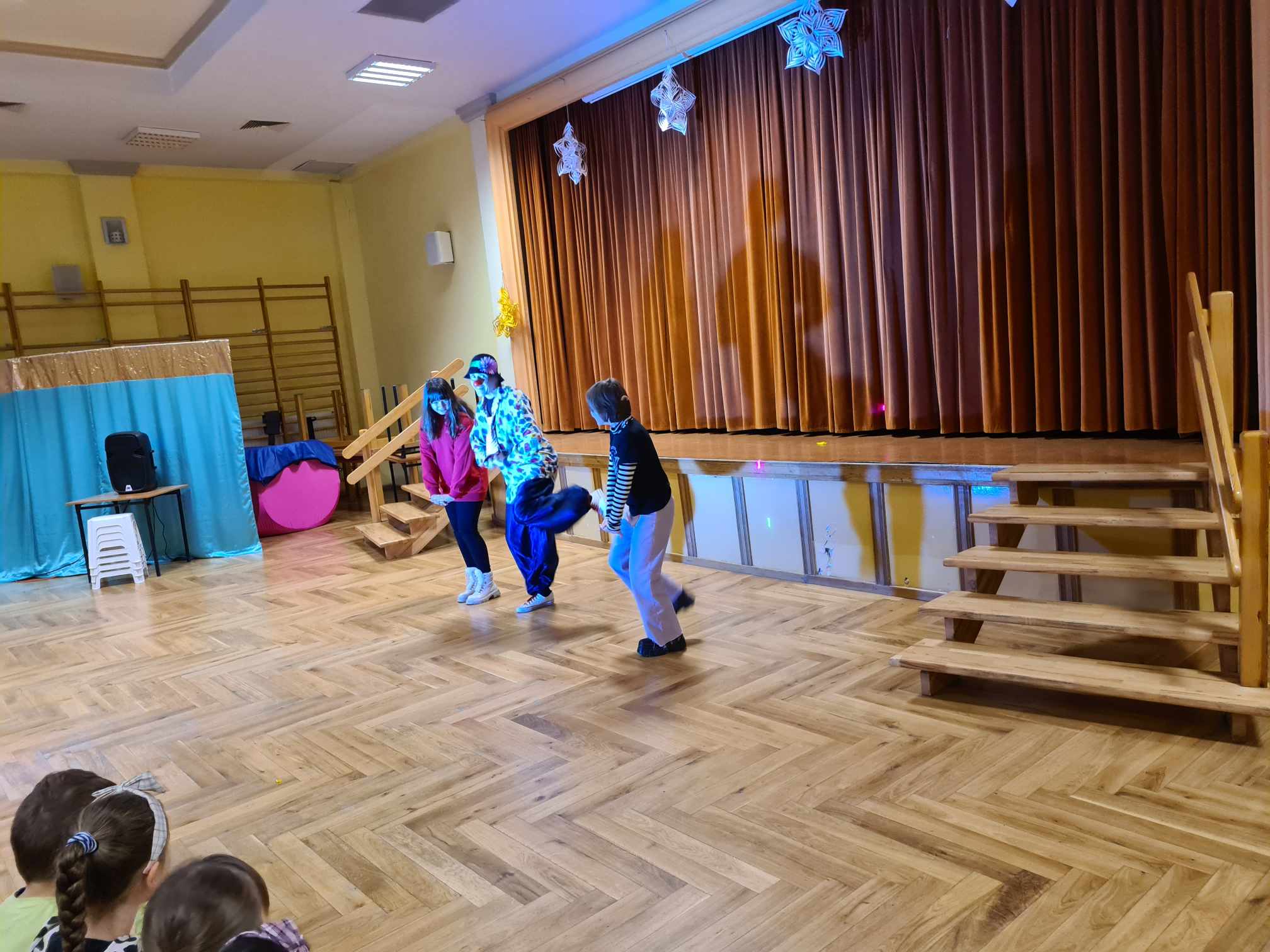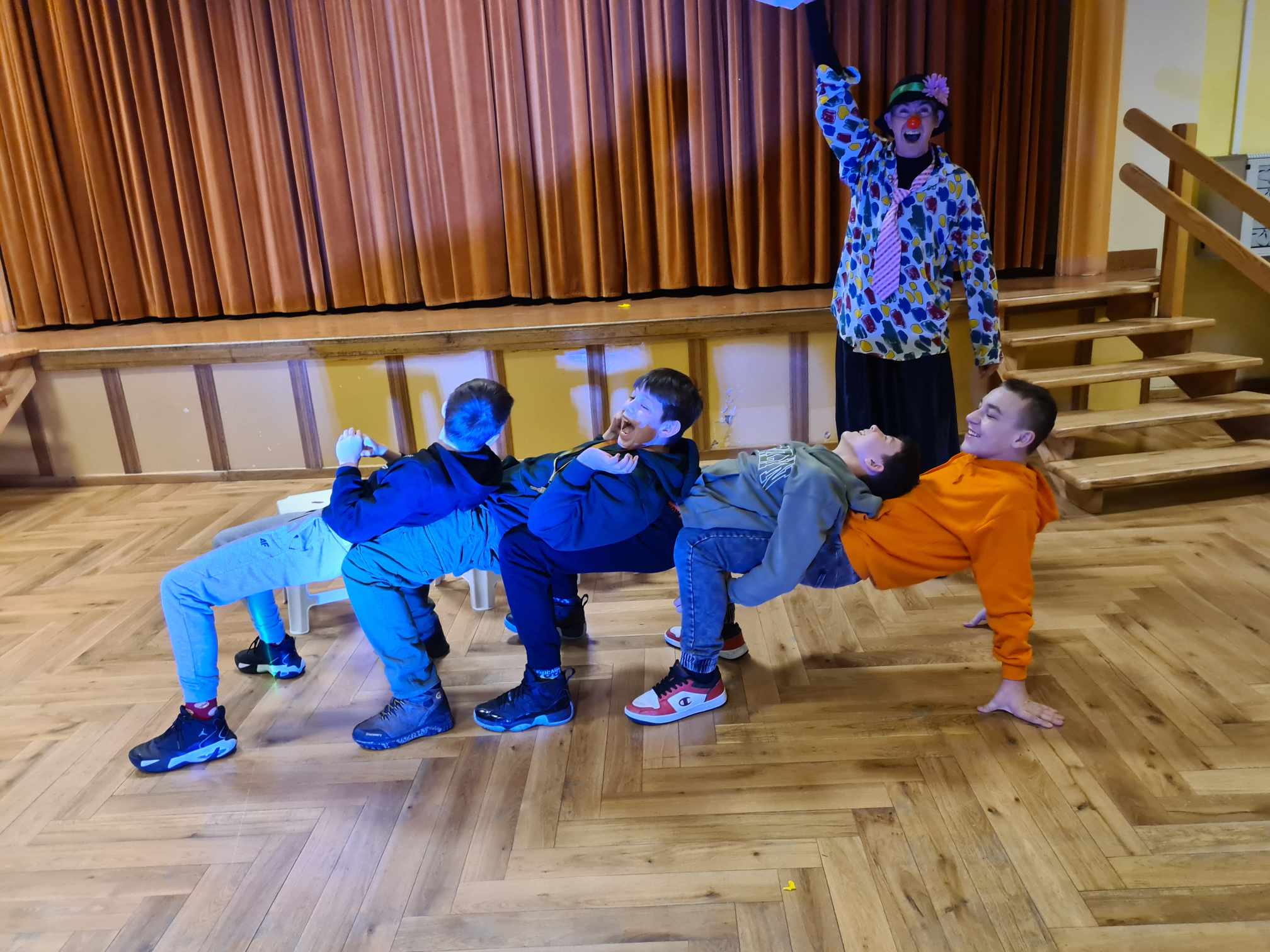 W gościnnych progach naszej placówki zagościli artyści z Rumunii, Ukrainy i Mołdawii, którzy uczestniczyli w międzynarodowych festiwalach i programach telewizyjnych np. w rumuńskiej wersji „Mam Talent”. Wystąpili: pomarańczowy zespół (wielkie lalki), piękna Jasmine w zabawnym tańcu, Różowa Pantera zamknięta w żywej kostce, klaun Igor, dziwny profesor z Niemiec i człowiek sprężyna, którego pokaz wywołał największy zachwyt publiczności. Uczniom podobało się to, iż choć na kilka chwil mogli stać się częścią przedstawienia, gdyż artyści włączali dzieci i młodzież do wspólnej zabawy. Pokazom towarzyszyła świetna muzyka, dym sceniczny i lasery.