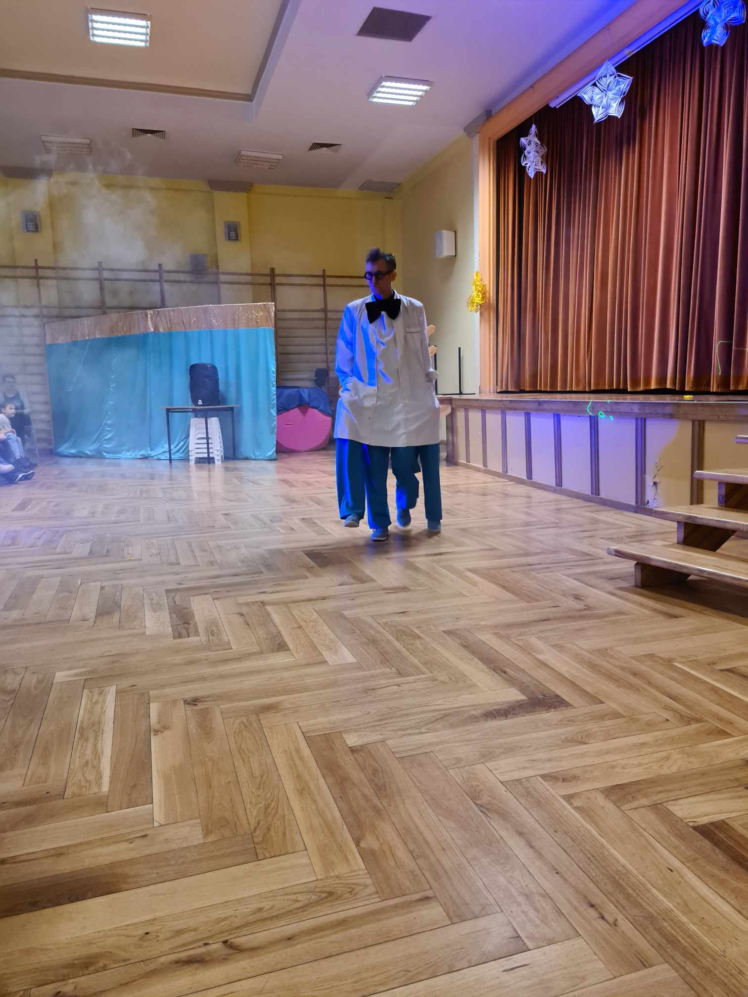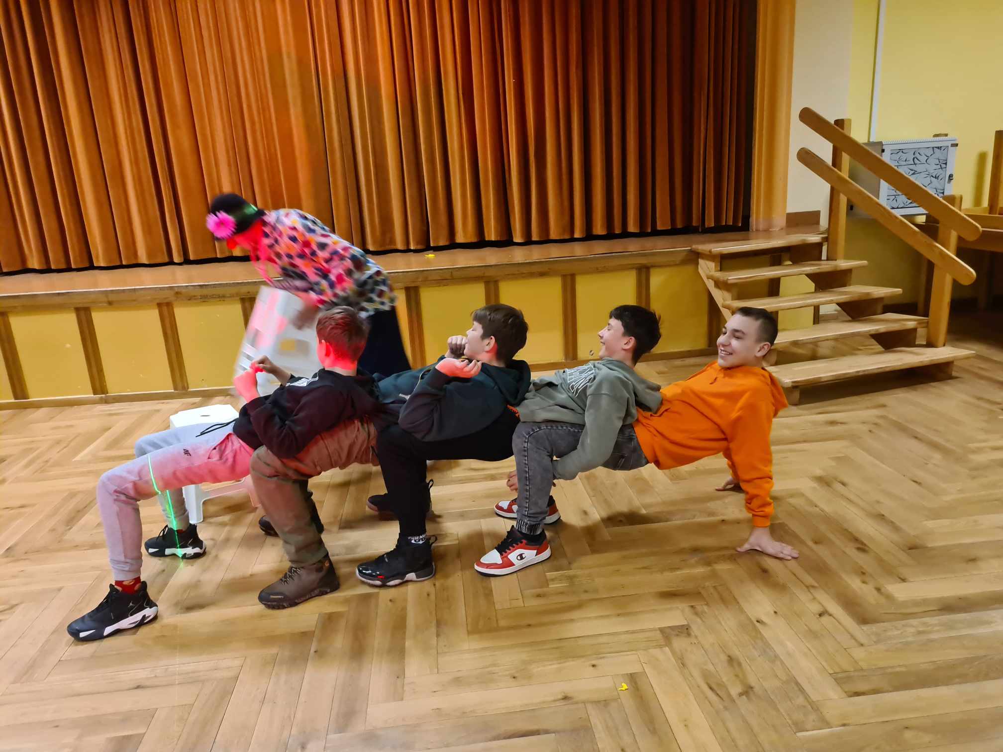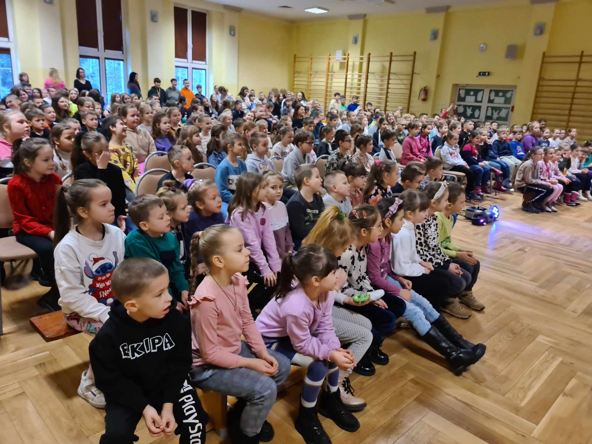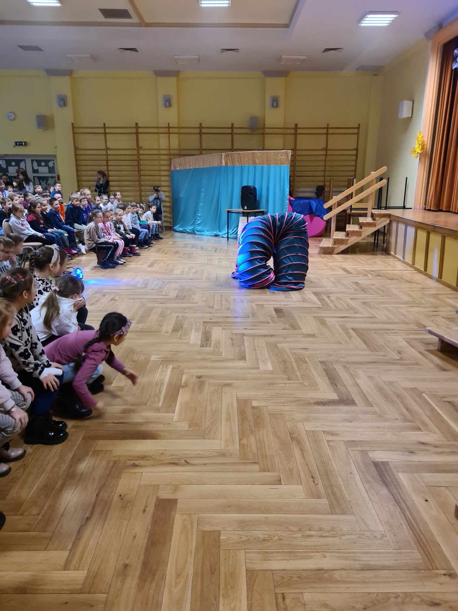 W gościnnych progach naszej placówki zagościli artyści z Rumunii, Ukrainy i Mołdawii, którzy uczestniczyli w międzynarodowych festiwalach i programach telewizyjnych np. w rumuńskiej wersji „Mam Talent”. Wystąpili: pomarańczowy zespół (wielkie lalki), piękna Jasmine w zabawnym tańcu, Różowa Pantera zamknięta w żywej kostce, klaun Igor, dziwny profesor z Niemiec i człowiek sprężyna, którego pokaz wywołał największy zachwyt publiczności. Uczniom podobało się to, iż choć na kilka chwil mogli stać się częścią przedstawienia, gdyż artyści włączali dzieci i młodzież do wspólnej zabawy. Pokazom towarzyszyła świetna muzyka, dym sceniczny i lasery.