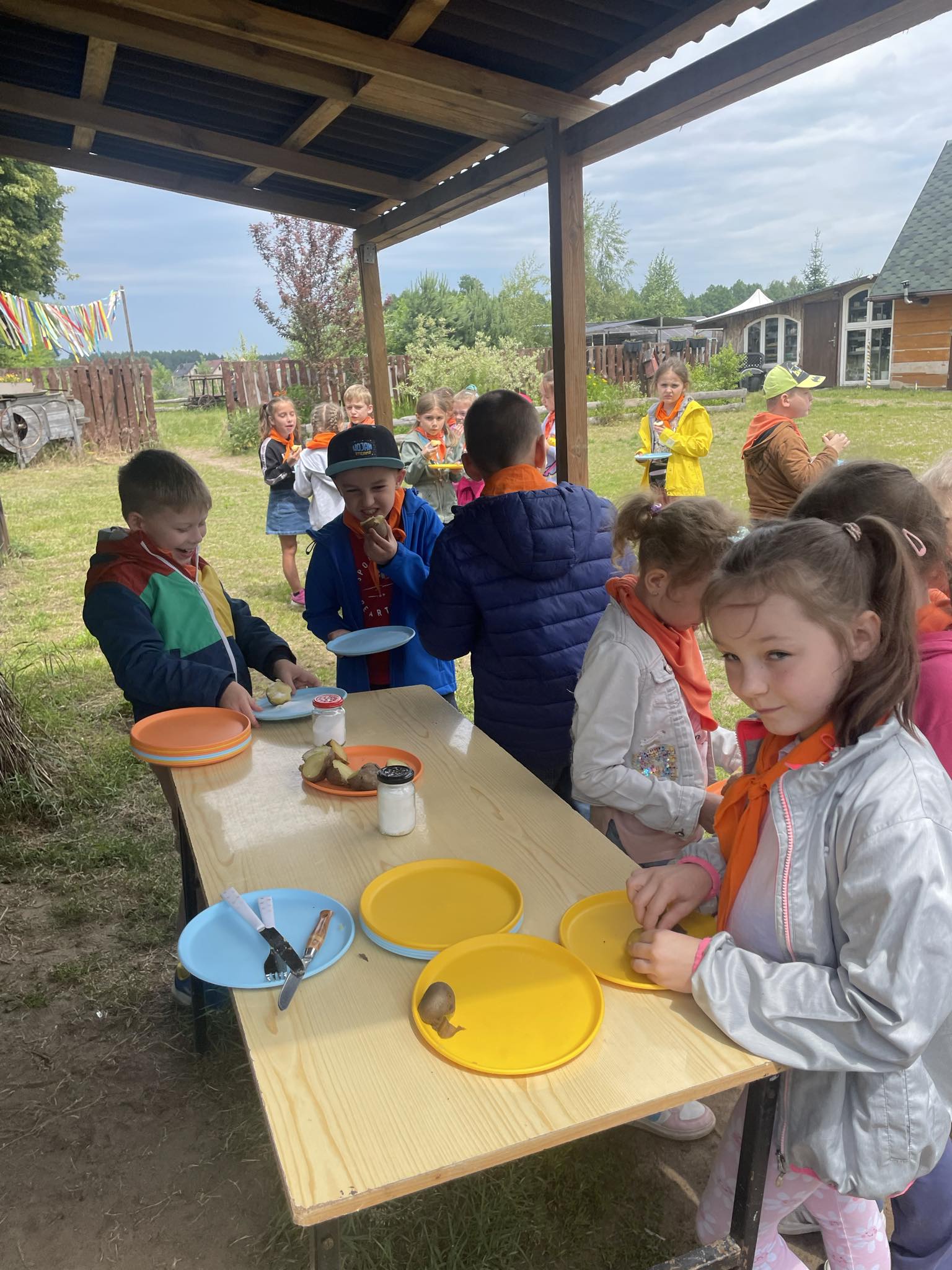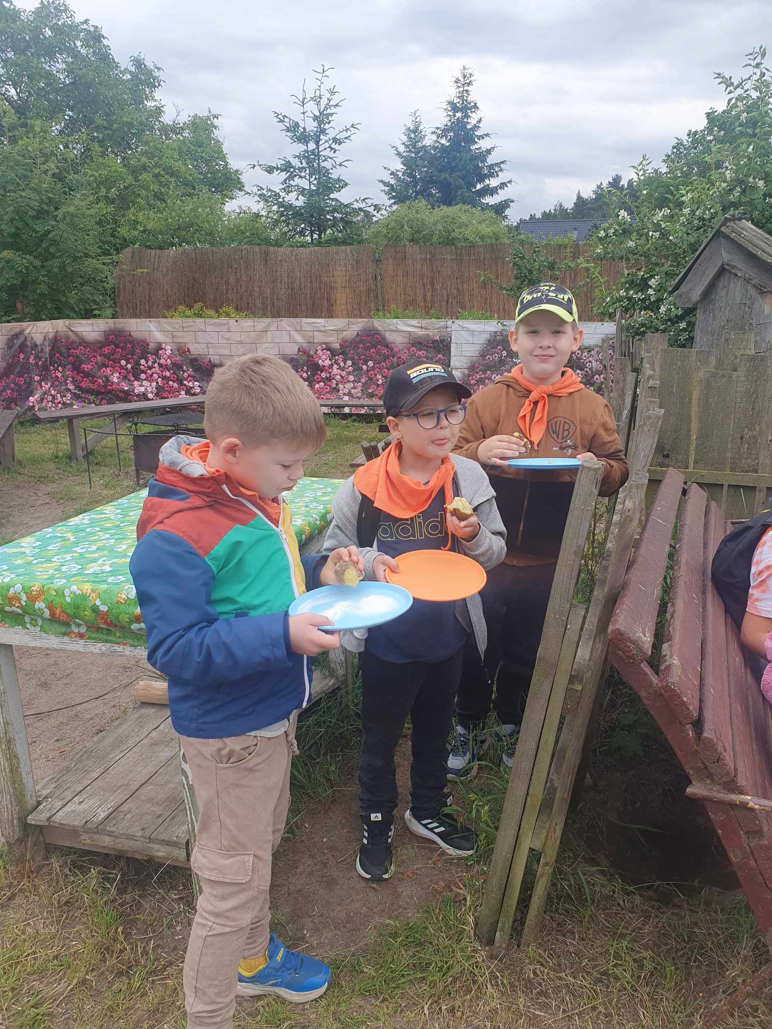 Na zakończenie otrzymali posiłek w formie ziemniaków, podawanych z parownika babci i zabawa na świeżym powietrzu.