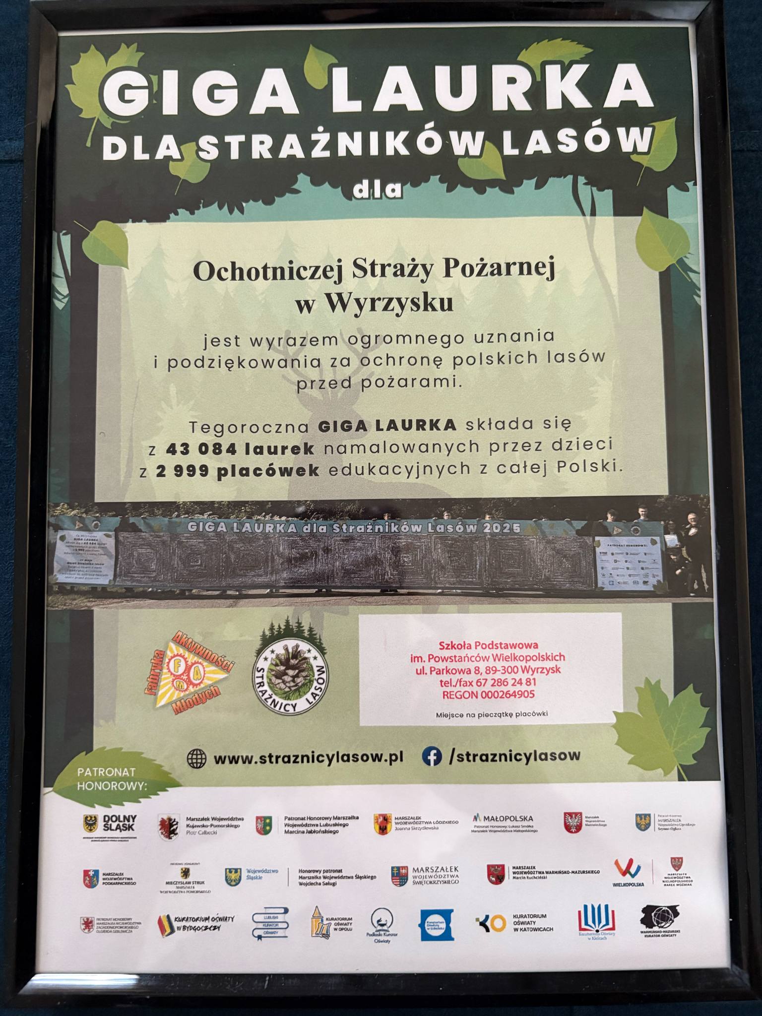 W dniu 29 maja obchodzimy Dzień Strażników Lasów. Z tej okazji uczniowie klasy 3a Szkoły Podstawowej i. Powstańców Wielkopolskich w Wyrzysku odwiedzili Ochotniczą Straż Pożarną w Wyrzysku. Spotkanie miało szczególny charakter, ponieważ było okazją do przekazania strażakom „Giga Laurki dla Strażników Lasów” jako wyrazu uznania i podziękowania za ich trud i poświęcenie w ochronie polskich lasów przed pożarami.