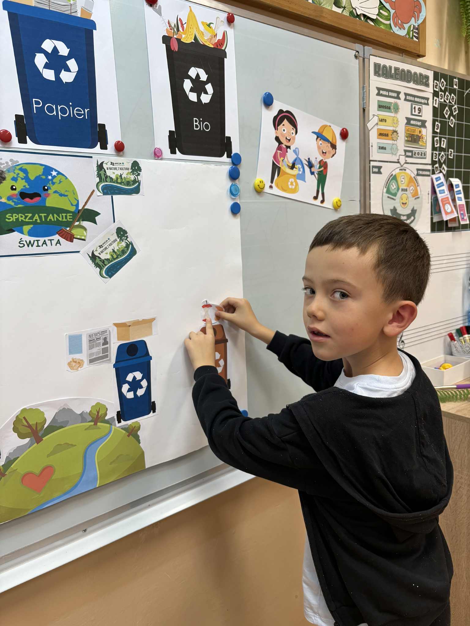 W tym roku przypada 32 akcja Sprzątania Świata po hasłem „W naturę z kulturą!” Sprzątanie świata wywodzi się z Australii. Akcja została zapoczątkowana w 1989r, a w Polsce – w 1994r. Nasza szkoła również włączyła się do tych działań. Klasy 1-3 zbierały śmieci w pobliżu terenu działek, w parku i amfiteatrze, ucząc się właściwie je segregować. Do działań dołączyły również klasy 4-6. Niektóre klasy wykonywały plakaty, umieszczając na nich ciekawe hasła oraz miały pogadanki na temat odpowiedniego segregowania śmieci i dbania o czystość Ziem. Uczniowie poznali także specjalny „Kodeks poprawnego zachowania w naturze”. To sześć prostych zasad, jakimi powinien kierować się każdy człowiek przebywający w okolicznościach przyrody, aby móc szczerze odpowiedzieć na pytanie zadane na plakacie Andrzeja Pągowskiego z Dzikiem Elegantem w roli głównej: „Dzik nie świni w lesie. A Ty?”