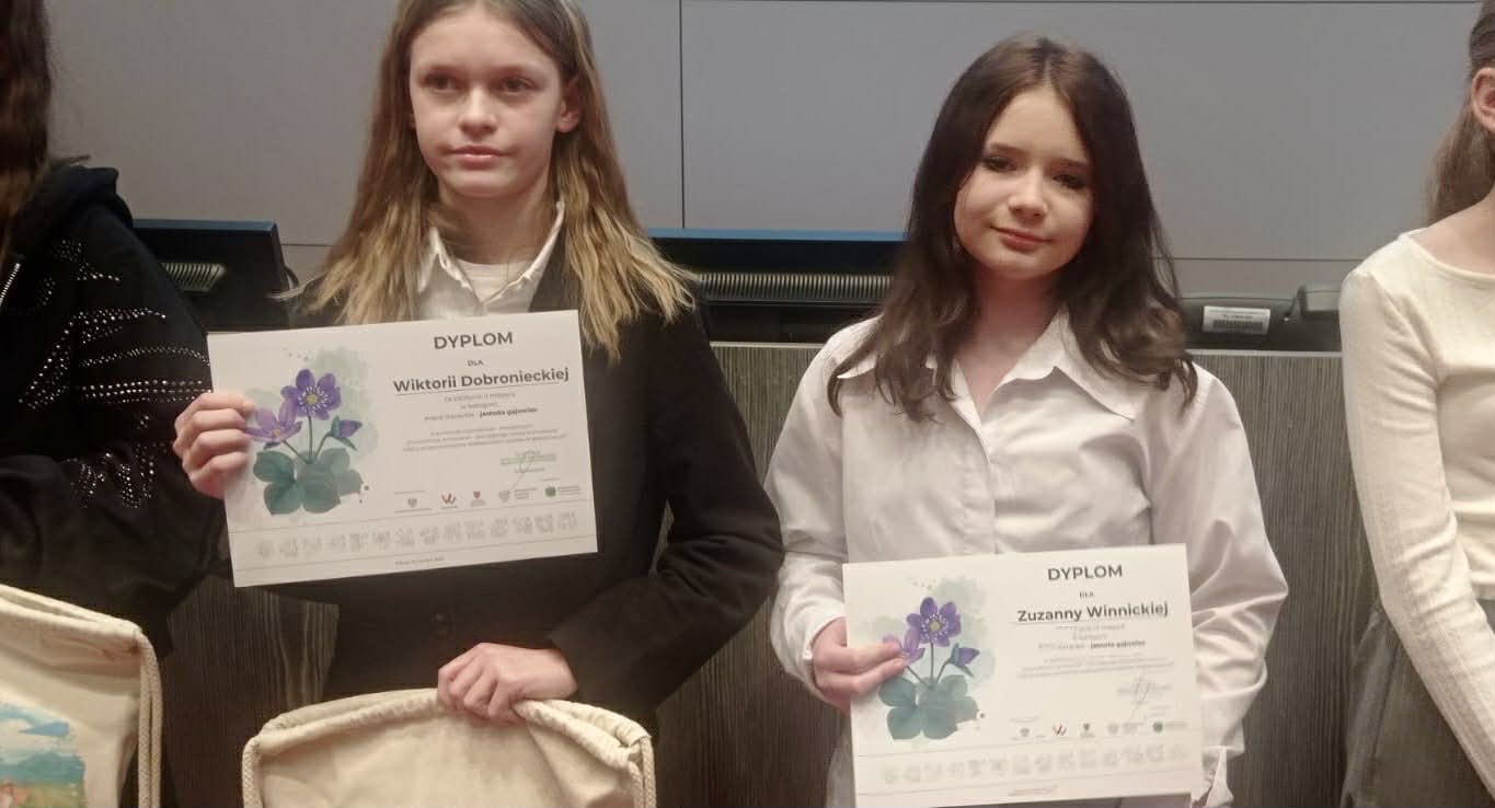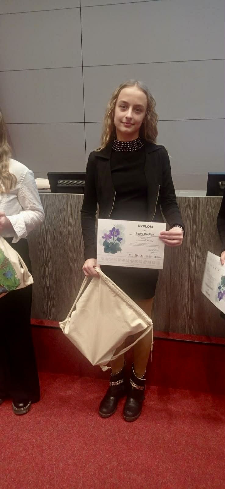 Ogromnie cieszy fakt, iż w gronie laureatów wojewódzkiego konkursu znalazło się czworo reprezentantów naszej szkoły. Zuzanna Winnicka (6a) zajęła III miejsce, natomiast drugie- Wiktoria Dobroniecka (7c), Lena Redlak (7c) oraz Wiktor Mróz (8b). Od organizatorów odebrali oni dyplomy i upominki, a publiczność nagrodziła ich gromkimi brawami.