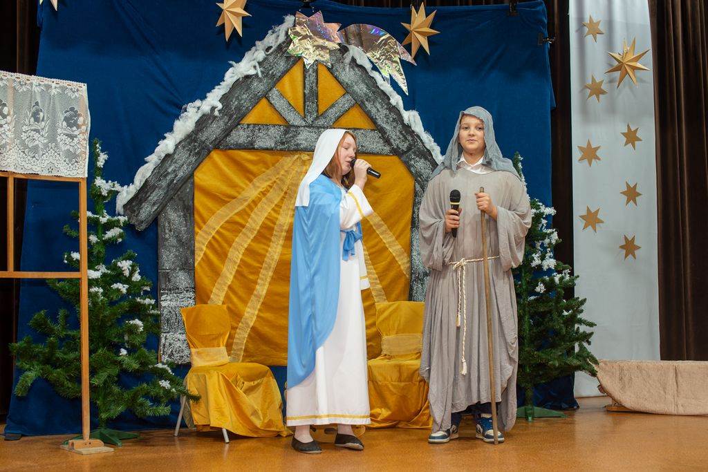 „Ktoś pukał do drzwi naszych, aleśmy nie słyszeli. Ledwo starczyło czasu opłatkiem się podzielić. Ktoś odszedł z naszych domów… wędruje, puka dalej, a my dla nieznajomych, stawiamy biały talerzyk. Takeśmy się śpieszyli, kłócili i cieszyli, że wszystko pogubili z tej najważniejszej chwili. Życzymy najlepszego, opłatek każdy kruszy. I nikt nie wie dlaczego samotność mamy w duszy” (Ernest Bryll)Boże Narodzenie to czas, kiedy wszyscy stają się dla siebie bardziej życzliwi, milsi i zapominają o wszelkich sporach, nieporozumieniach. Aby podkreślić wyjątkowy charakter tych świąt uczniowie naszej szkoły tradycyjnie jak co roku wystawili Jasełka Bożonarodzeniowe. Było to w piątek 19. grudnia. W specjalnie przygotowanych strojach oraz w pięknej scenografii, ukazującej ludzi podążających do Betlejem, młodzi aktorzy przedstawili sceny narodzin Chrystusa. Zgromadzona publiczność po raz kolejny mogła przeżyć historię Maryi i Józefa szukających na noc schronienia. W dzisiejszych czasach, tak samo jak przeszło 2000 lat temu, Jezus pukał do drzwi i szukał schronienia w niejednym sercu człowieka.Jasełka w wykonaniu uczniów klasy 5a, 5c i 8a wprowadziły wszystkich w świąteczny, cudowny nastrój, a wspaniała muzyka, przy akompaniamencie pianina, klarnetów, fletów, dzwonków i gitar wraz ze śpiewem pastorałek, kolęd i piosenek świątecznych uświadomiły wszystkim, że magiczne święta Bożego Narodzenia są już bardzo blisko. Przedstawienie było niezwykłym przeżyciem zarówno dla aktorów i nauczycieli jak i zaproszonych gości.Po zakończonym spektaklu artyści otrzymali gromkie brawa i głos zabrała dyrektor szkoły pani Ewa Dmochewicz, która podziękowała uczniom i nauczycielom za przygotowanie występu oraz złożyła wszystkim życzenia świąteczne.Nad całością Jasełek czuwały panie: Kornelia Kwasińska i Agnieszka Rummel. Przepiękną dekorację wykonały Panie : Lidia Troczyńska i Joanna Osesek. Nagłośnieniem zajęli się Panowie: Wojciech Sobiech i Marek Nowicki, a wykonywaniem zdjęć Pani Anna Poniewierska.Wszystkim, którzy przeczytają to sprawozdanie, życzę otwartości na innych, zwykłego uśmiechu i gestu podania ręki drugiemu człowiekowi, powodującego przemianę w innych i w nas samych…