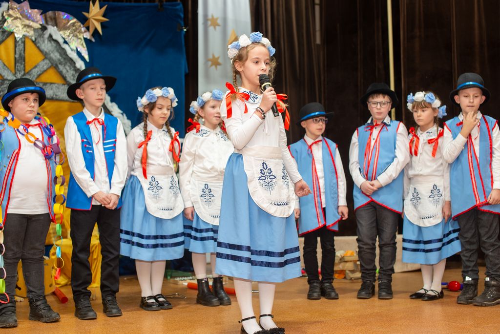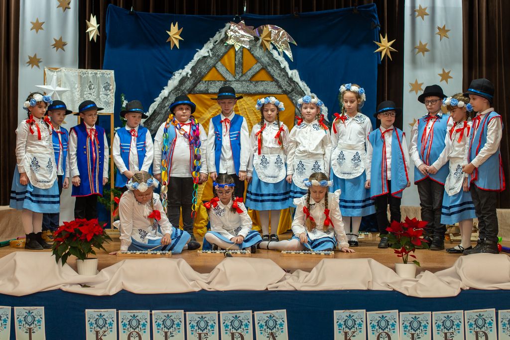 „Ktoś pukał do drzwi naszych, aleśmy nie słyszeli. Ledwo starczyło czasu opłatkiem się podzielić. Ktoś odszedł z naszych domów… wędruje, puka dalej, a my dla nieznajomych, stawiamy biały talerzyk. Takeśmy się śpieszyli, kłócili i cieszyli, że wszystko pogubili z tej najważniejszej chwili. Życzymy najlepszego, opłatek każdy kruszy. I nikt nie wie dlaczego samotność mamy w duszy” (Ernest Bryll)Boże Narodzenie to czas, kiedy wszyscy stają się dla siebie bardziej życzliwi, milsi i zapominają o wszelkich sporach, nieporozumieniach. Aby podkreślić wyjątkowy charakter tych świąt uczniowie naszej szkoły tradycyjnie jak co roku wystawili Jasełka Bożonarodzeniowe. Było to w piątek 19. grudnia. W specjalnie przygotowanych strojach oraz w pięknej scenografii, ukazującej ludzi podążających do Betlejem, młodzi aktorzy przedstawili sceny narodzin Chrystusa. Zgromadzona publiczność po raz kolejny mogła przeżyć historię Maryi i Józefa szukających na noc schronienia. W dzisiejszych czasach, tak samo jak przeszło 2000 lat temu, Jezus pukał do drzwi i szukał schronienia w niejednym sercu człowieka.Jasełka w wykonaniu uczniów klasy 5a, 5c i 8a wprowadziły wszystkich w świąteczny, cudowny nastrój, a wspaniała muzyka, przy akompaniamencie pianina, klarnetów, fletów, dzwonków i gitar wraz ze śpiewem pastorałek, kolęd i piosenek świątecznych uświadomiły wszystkim, że magiczne święta Bożego Narodzenia są już bardzo blisko. Przedstawienie było niezwykłym przeżyciem zarówno dla aktorów i nauczycieli jak i zaproszonych gości.Po zakończonym spektaklu artyści otrzymali gromkie brawa i głos zabrała dyrektor szkoły pani Ewa Dmochewicz, która podziękowała uczniom i nauczycielom za przygotowanie występu oraz złożyła wszystkim życzenia świąteczne.Nad całością Jasełek czuwały panie: Kornelia Kwasińska i Agnieszka Rummel. Przepiękną dekorację wykonały Panie : Lidia Troczyńska i Joanna Osesek. Nagłośnieniem zajęli się Panowie: Wojciech Sobiech i Marek Nowicki, a wykonywaniem zdjęć Pani Anna Poniewierska.Wszystkim, którzy przeczytają to sprawozdanie, życzę otwartości na innych, zwykłego uśmiechu i gestu podania ręki drugiemu człowiekowi, powodującego przemianę w innych i w nas samych…