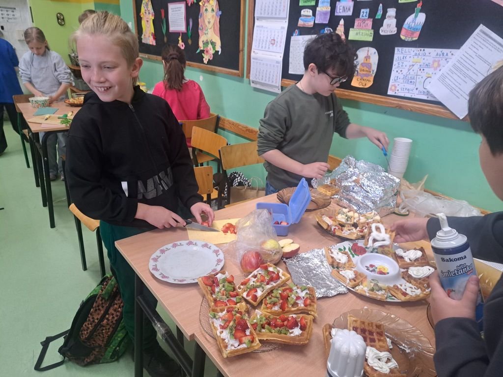 Dnia 21 kwietnia w Szkole Podstawowej im. Powstańców Wielkopolskich w Wyrzysku w ramach tygodnia profilaktyki zdrowia uczniowie kl.4-6 przygotowywali zdrowe przekąski.