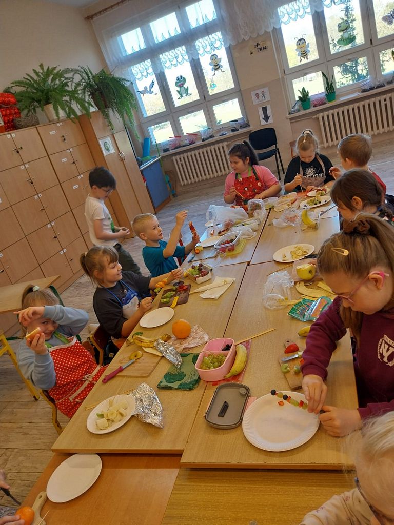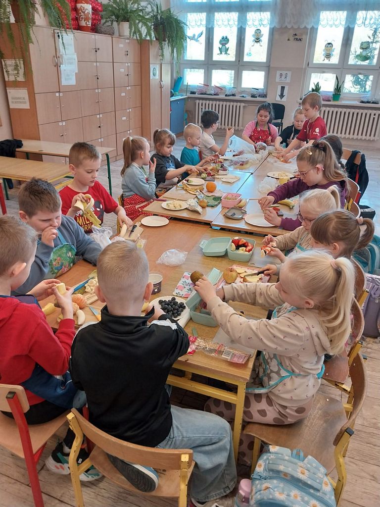 W dniach od 13 do 17 kwietnia w naszej szkole odbyły się Dni Zdrowia i Profilaktyki skierowane do uczniów klas 1–3. Celem wydarzenia było kształtowanie zdrowych nawyków oraz promowanie aktywnego stylu życia. Hasło przewodnie brzmiało „Już od najmłodszych lat dbamy o zdrowie”. W ramach tej akcji uczniom klas 1-3 przypomniano zasady zdrowego odżywiania się. Na gazetce, na korytarzu szkolnym, zawisły informacje dotyczące zdrowego stylu życia. Dla klas młodszych zorganizowano przerwy oraz przerwy śródlekcyjne sprzyjające ruchowi. Wspólnie wykonano tańce „Belgijka” i „Kaczuchy”, które integrowały uczniów i zachęcały do aktywności fizycznej. Odbywały się też zajęcia kulinarne, podczas których dzieci pod opieką wychowawców przygotowywały zdrowe posiłki, takie jak kolorowe kanapki, sałatki, szaszłyki oraz świeże soki, a wszystko to z owoców i warzyw. Uczniowie wykonywali również plakaty i przygotowywali prezentacje na temat zdrowia.