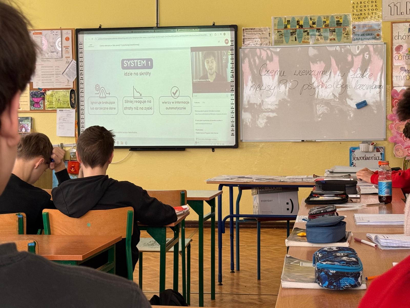 W klasie 7c, podczas lekcji języka polskiego prowadzonej przez panią Annę Panek, uczniowie realizowali temat: Czemu wierzymy w fake newsy? O psychologii dezinformacji. W ramach zajęć mieli okazję obejrzeć webinar prowadzony przez eksperta NASK.