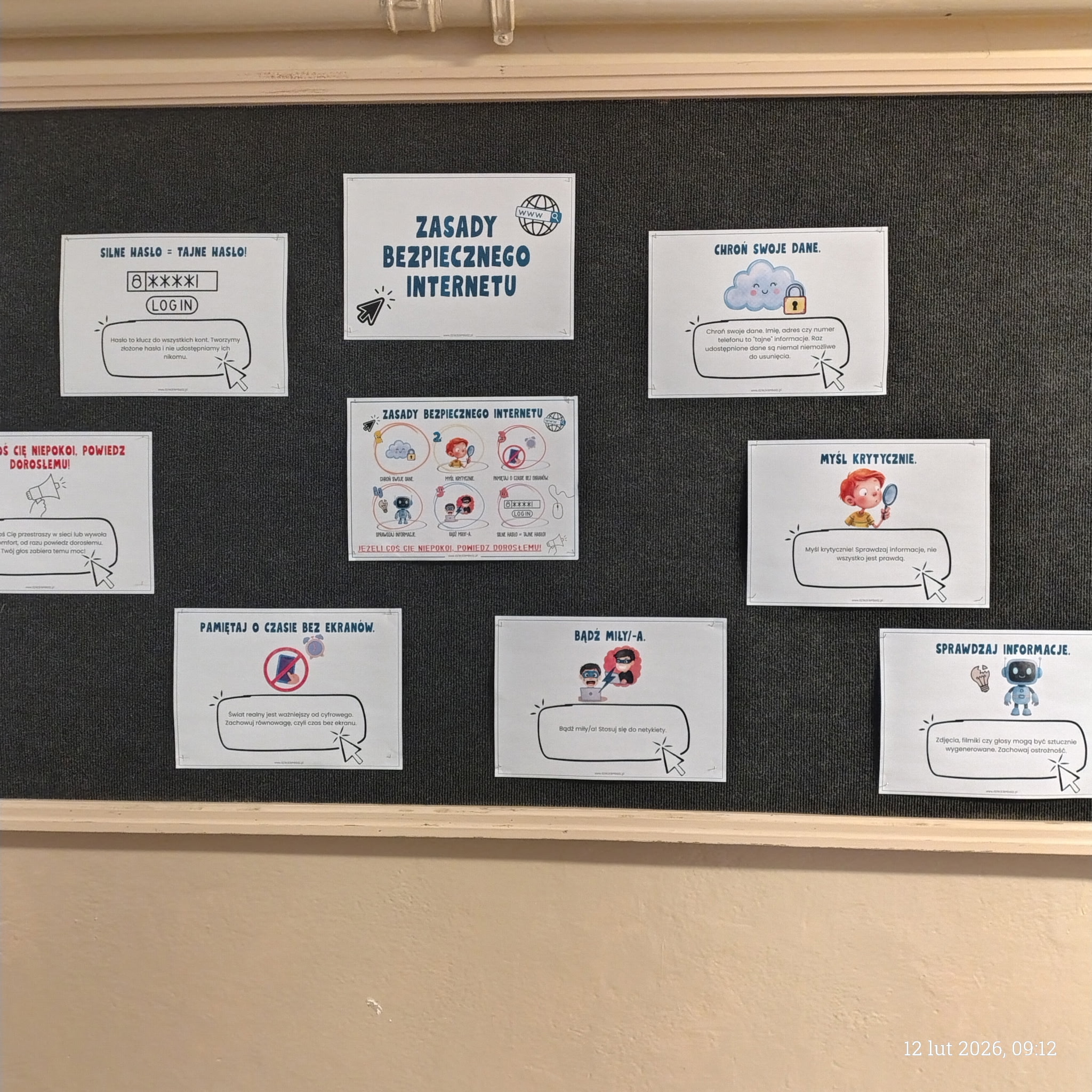 10 lutego obchodzimy Dzień Bezpiecznego Internetu. Taki dzień świętowaliśmy również w naszej szkole. Jego celem było zwiększenie świadomości uczniów na temat bezpiecznego i odpowiedzialnego korzystania z sieci.W ramach obchodów na zajęciach wychowawczych zorganizowano pogadanki oraz prezentacje multimedialne. Nauczycielki informatyki – p. Anna Hoppe oraz p. Małgorzata Dróbka – Jiers podczas lekcji prowadziły warsztaty dotyczące zagrożeń w Internecie, takich jak cyberprzemoc, hejt, oszustwa internetowe czy uzależnienie od mediów społecznościowych. Na szkolnych korytarzach pojawiły się również gazetki i plakaty poświęcone tej tematyce.Uczniowie dowiedzieli się, jak chronić swoje dane osobowe, tworzyć bezpieczne hasła oraz jak reagować w sytuacjach niebezpiecznych w sieci.Dzień Bezpiecznego Internetu jest cenną lekcją dla całej społeczności szkolnej i przypomnia, że z Internetu należy korzystać mądrze i odpowiedzialnie.