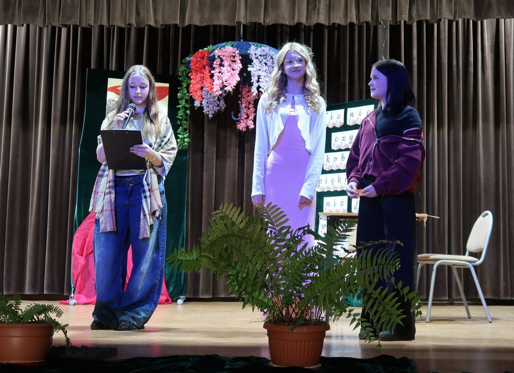 poprowadziły uczennice kl. ósmej: Magdalena Jańczak i Oliwia Zielińska. Dziewczęta podkreśliły jak ważną rolę na świecie pełnią kobiety. Po krótkim wstępie zaprosiły przybyłych gości do obejrzenia części