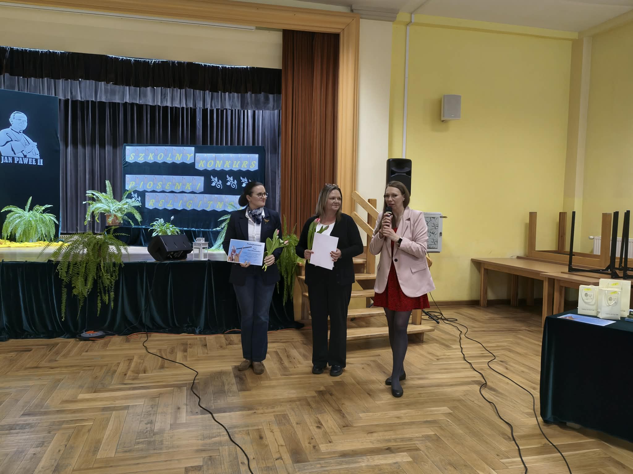 Po ogłoszeniu wyników komisja dokonała uroczystego wręczenia nagród i dyplomów. Na zakończenie konkursu wszyscy uczestnicy oraz zgromadzona publiczność wspólnie zaśpiewali ulubioną pieśń Ojca Świętego Jana Pawła II – „Barkę”.